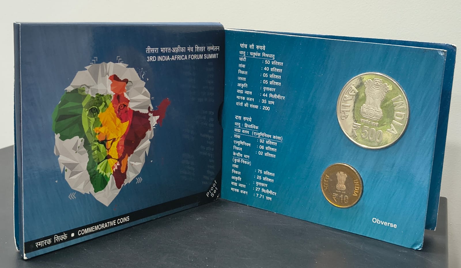 3RD INDIA-AFRICA FORUM SUMMIT KOLKATA MINT RARE 2 COINS ((PROOF SET))