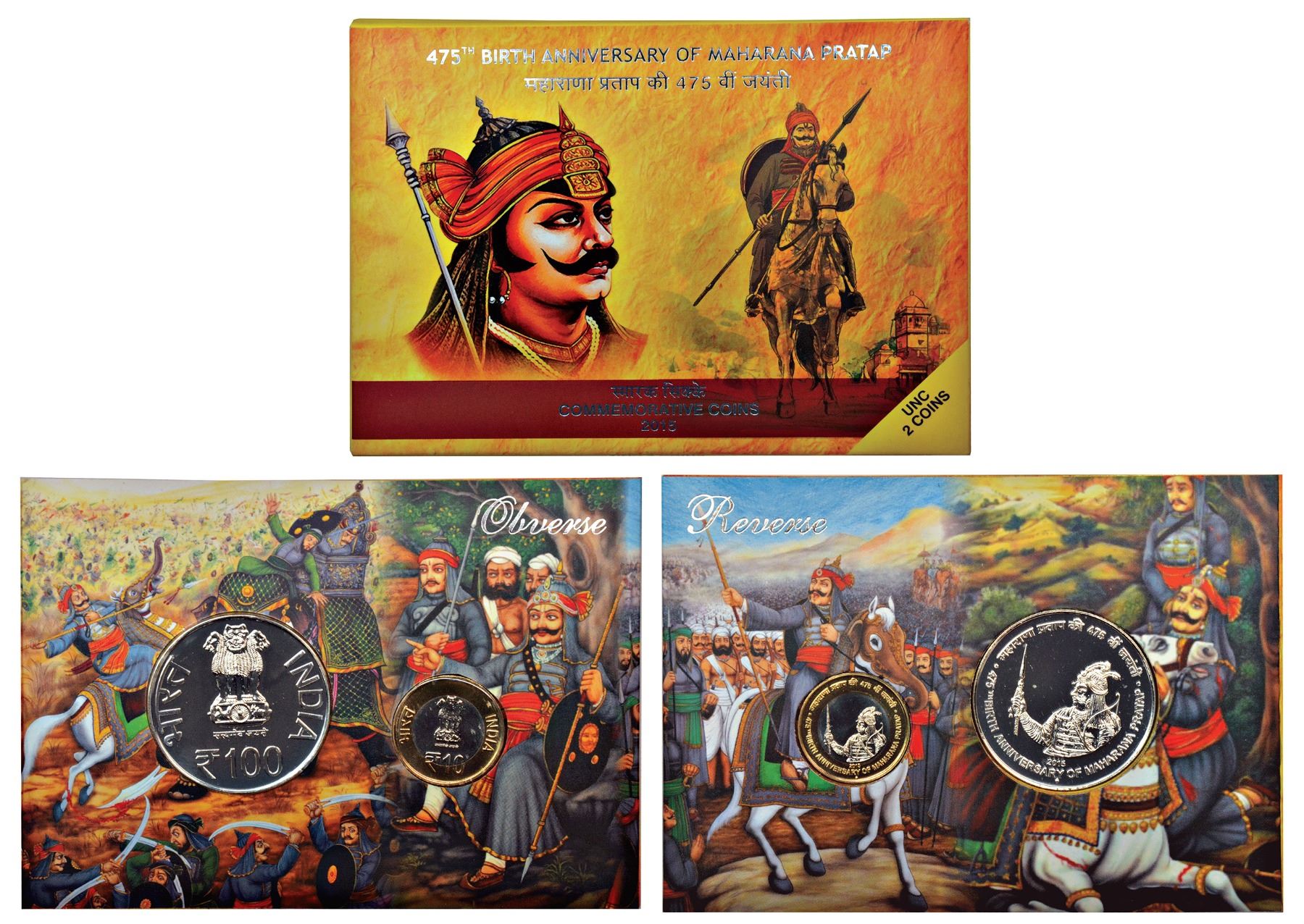 475th Birth Anniversary Of Maharana Pratap 2015 (2 Coin Set) Mumbai Mint Rare UNC SET