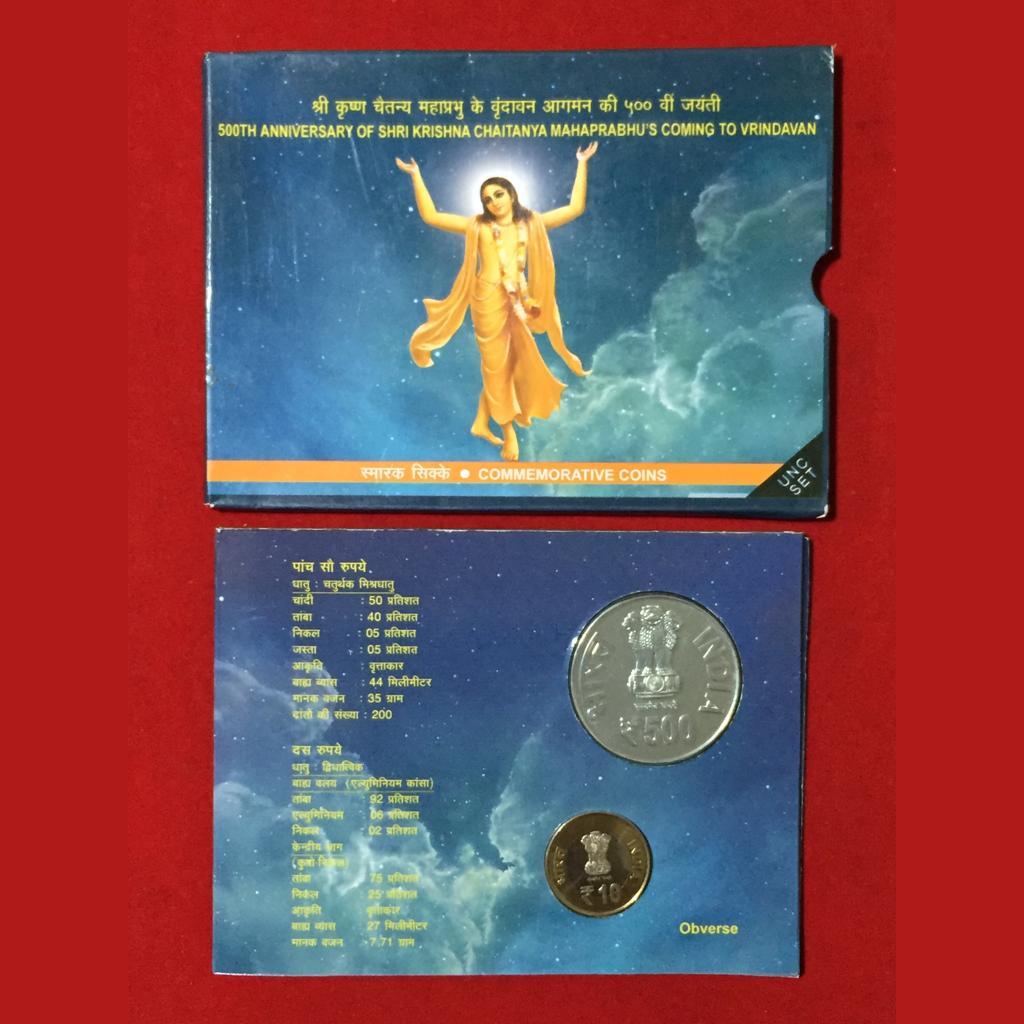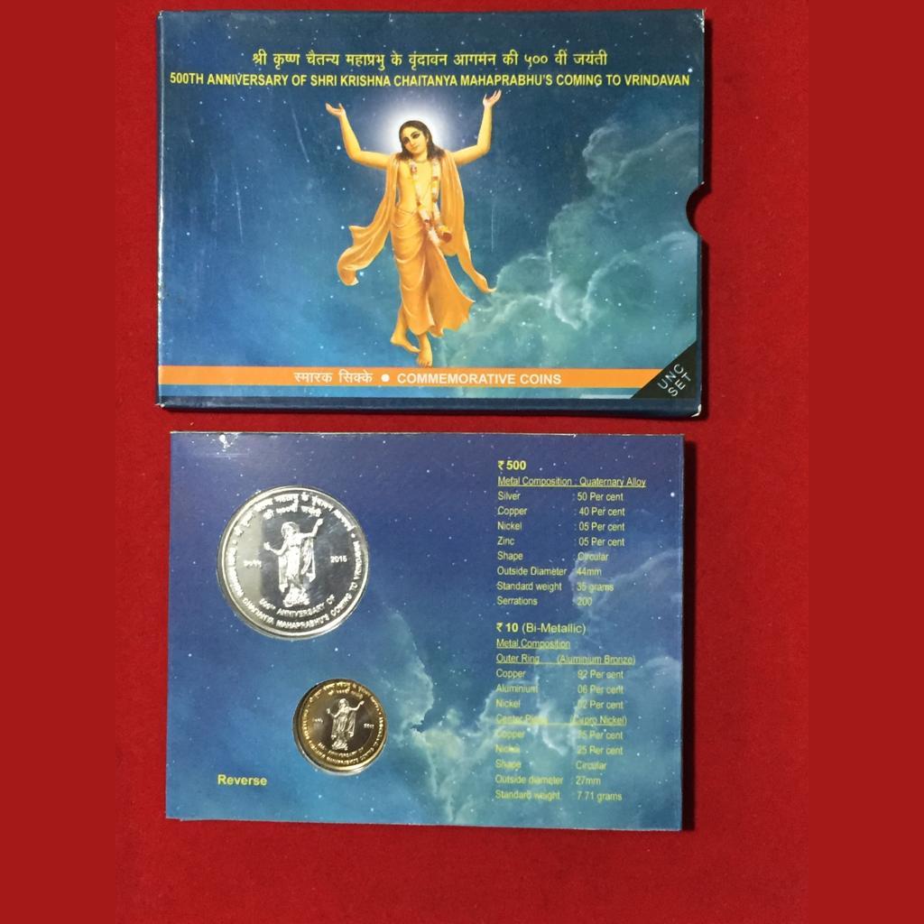 500th Anniversary Of Shri Krishna Chaitanya Mahaprabhu’s Coming To Vrindavan Kolkata Mint (UNC Set)