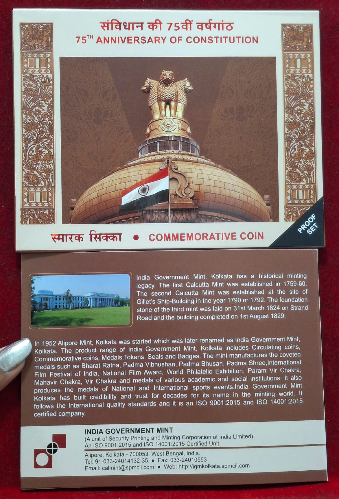 75th ANNIVERSARY OF CONSTITUTION KOLKATA MINT RARE ((PROOF SET))