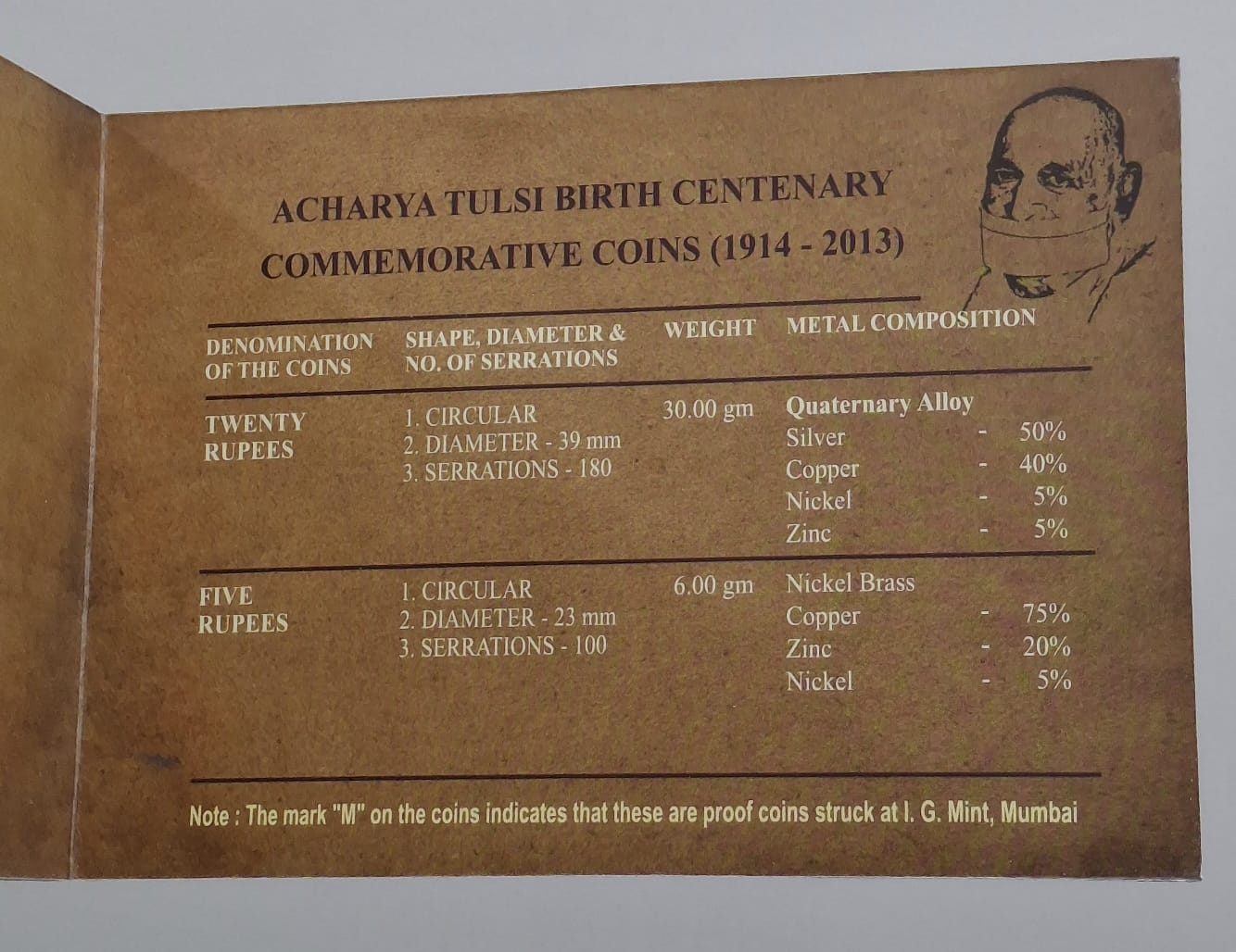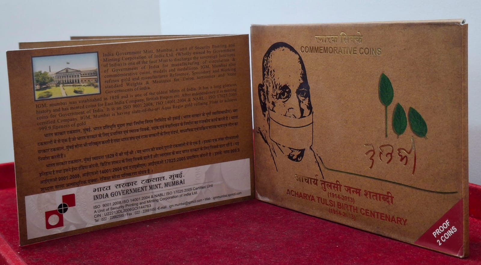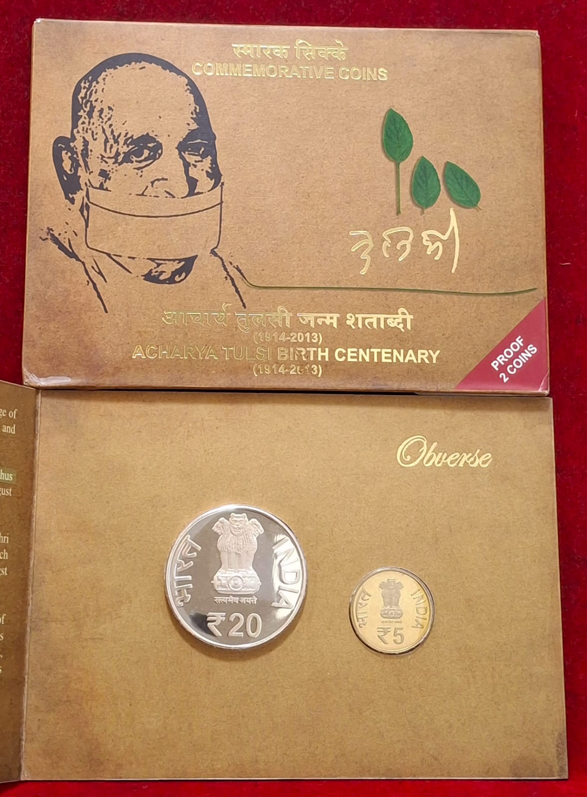 ACHARYA TULSI BIRTH CENTENARY 2013 MUMBAI MINT RARE 2 COINS ((PROOF SET))
