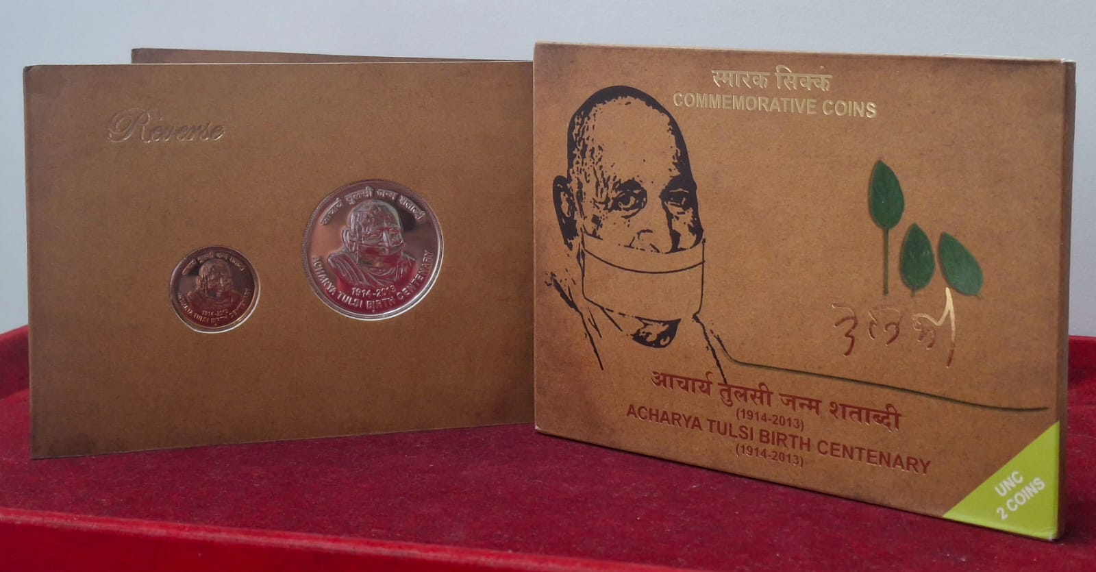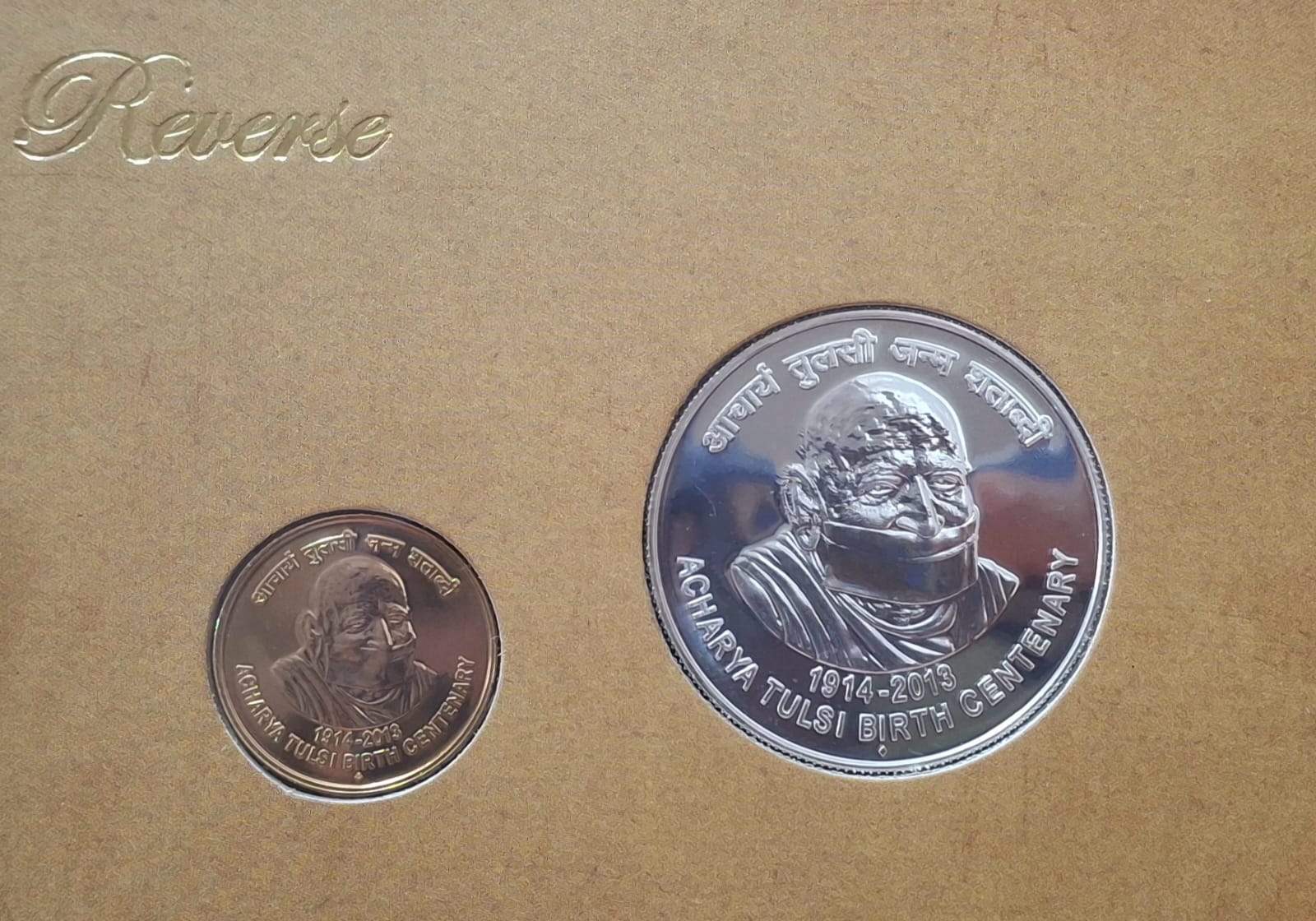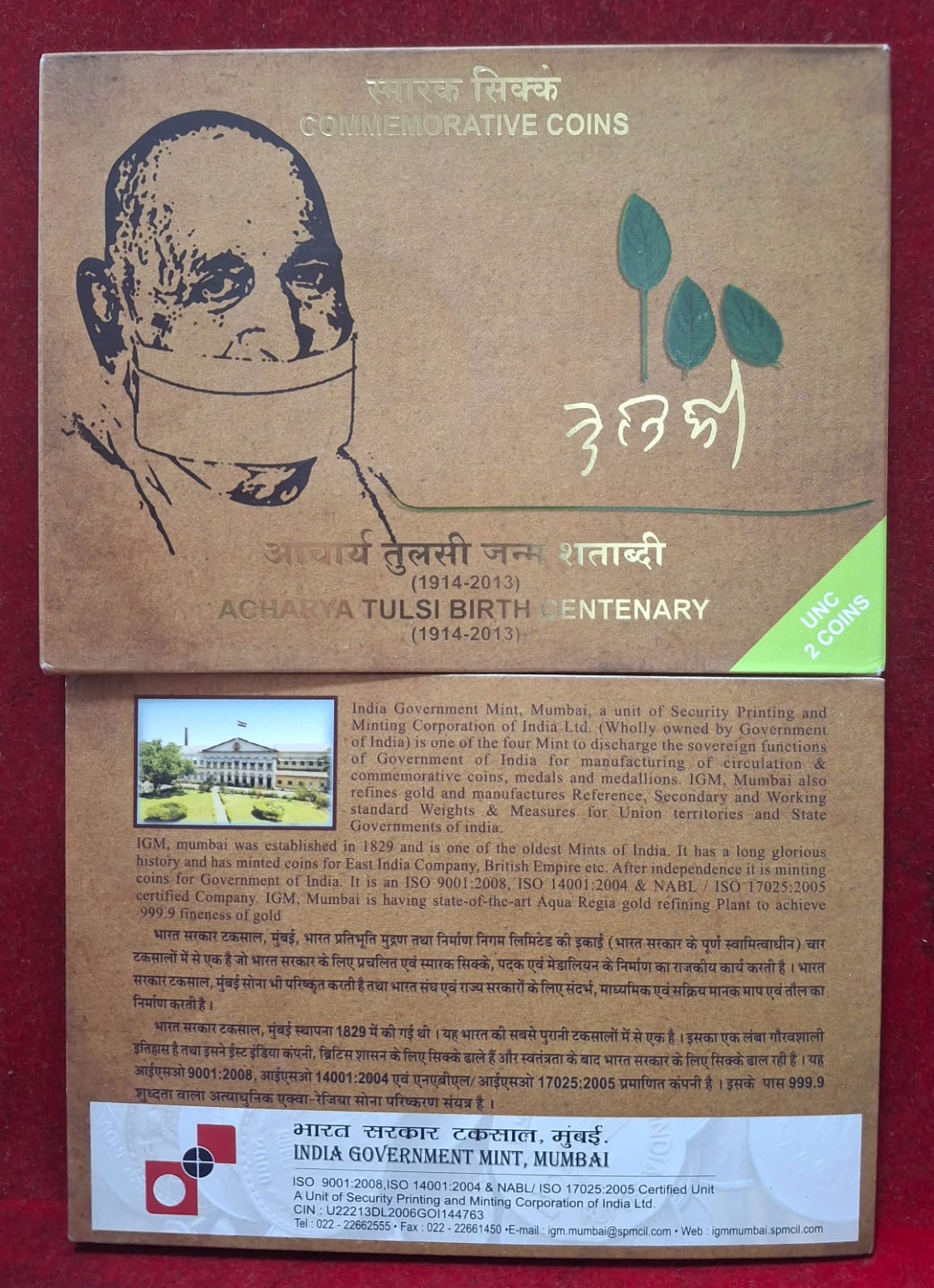 ACHARYA TULSI BIRTH CENTENARY 2013 RARE MUMBAI MINT 2 COINS (UNC SET)