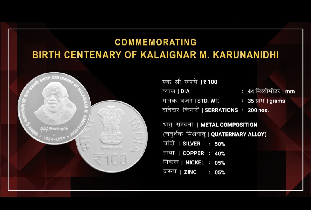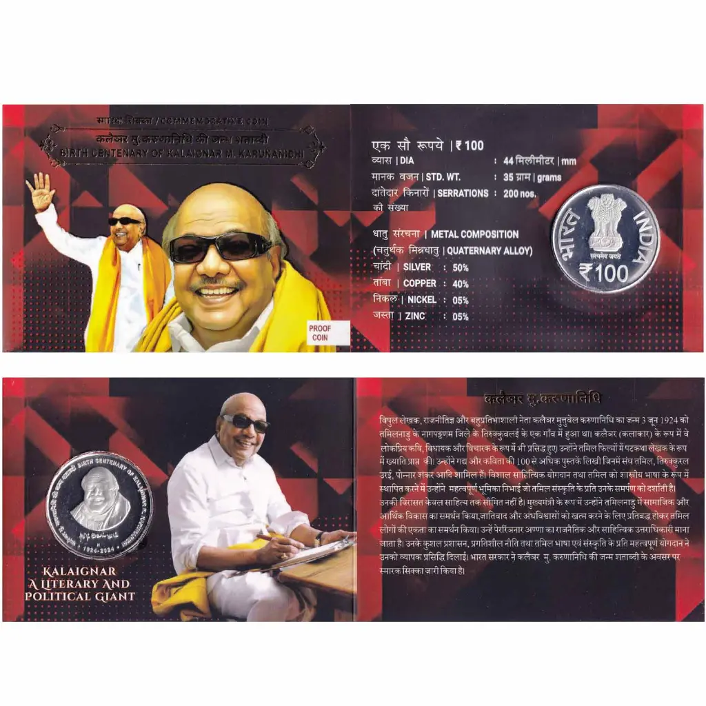 BIRTH ANNIVERSARY OF KALAIGNAR M. KARUNANIDHI – 2024 COIN HYDERABAD MINT, PROOF SET
