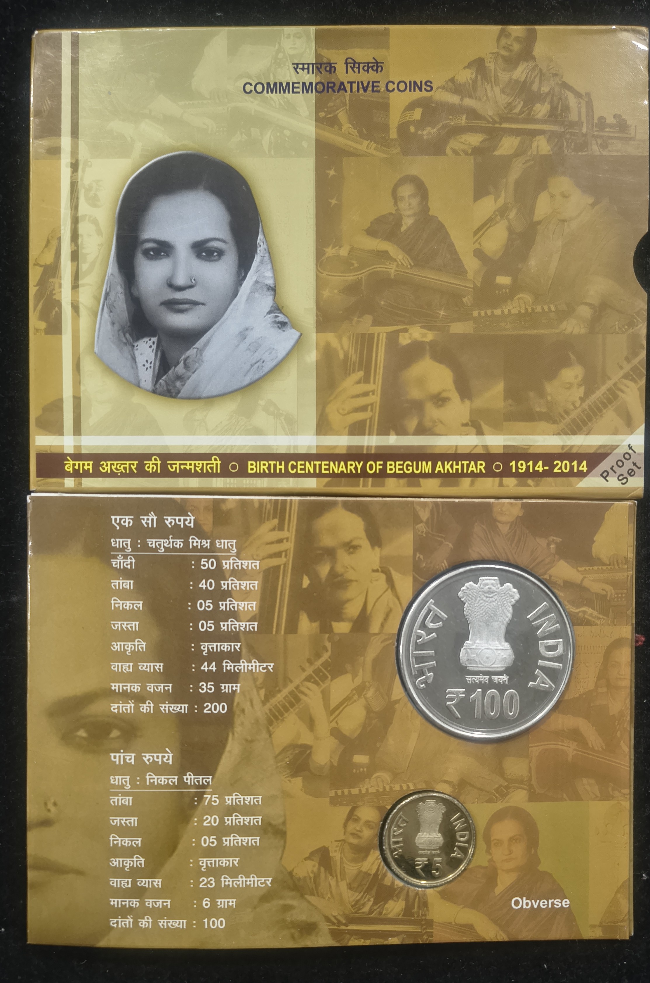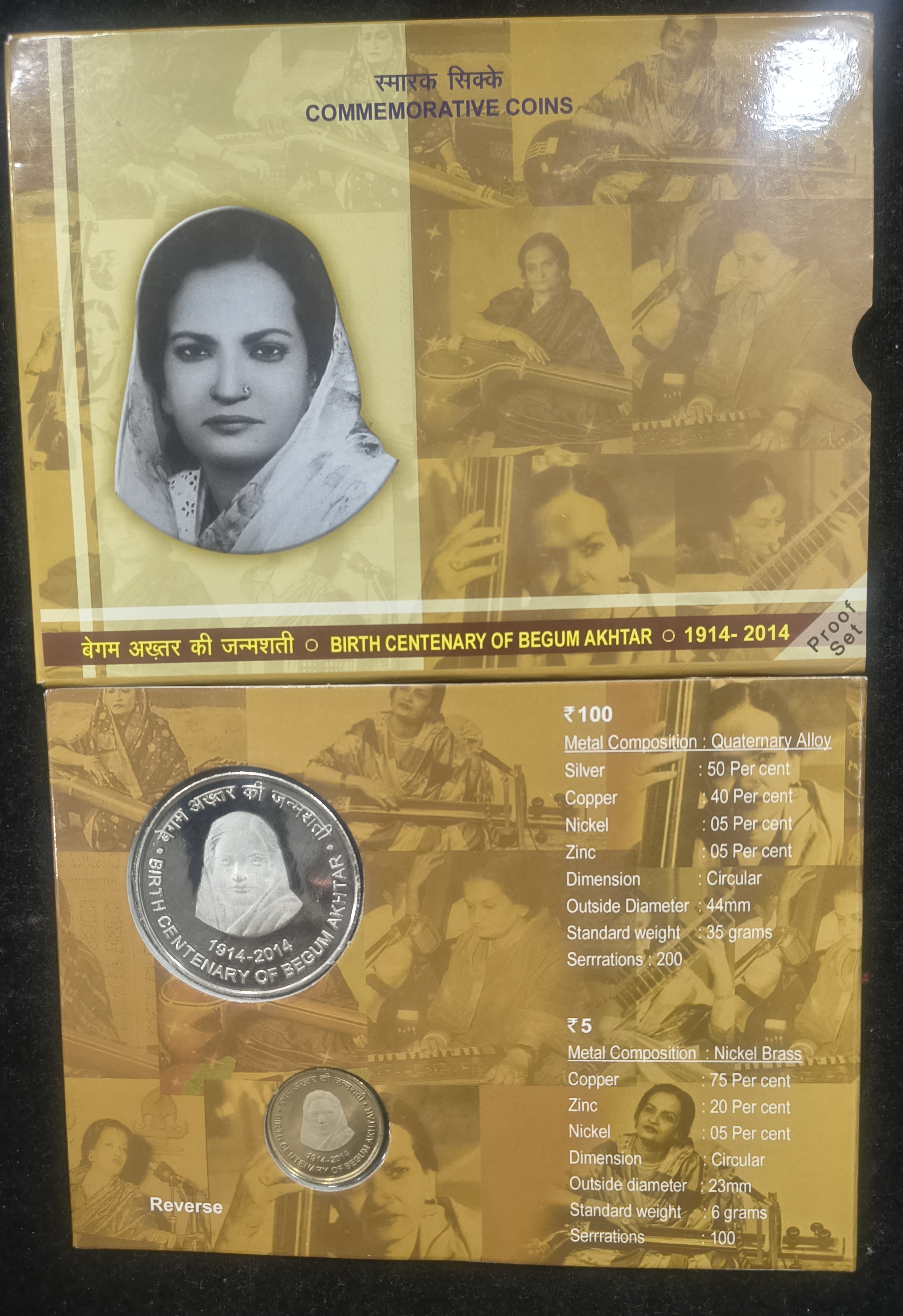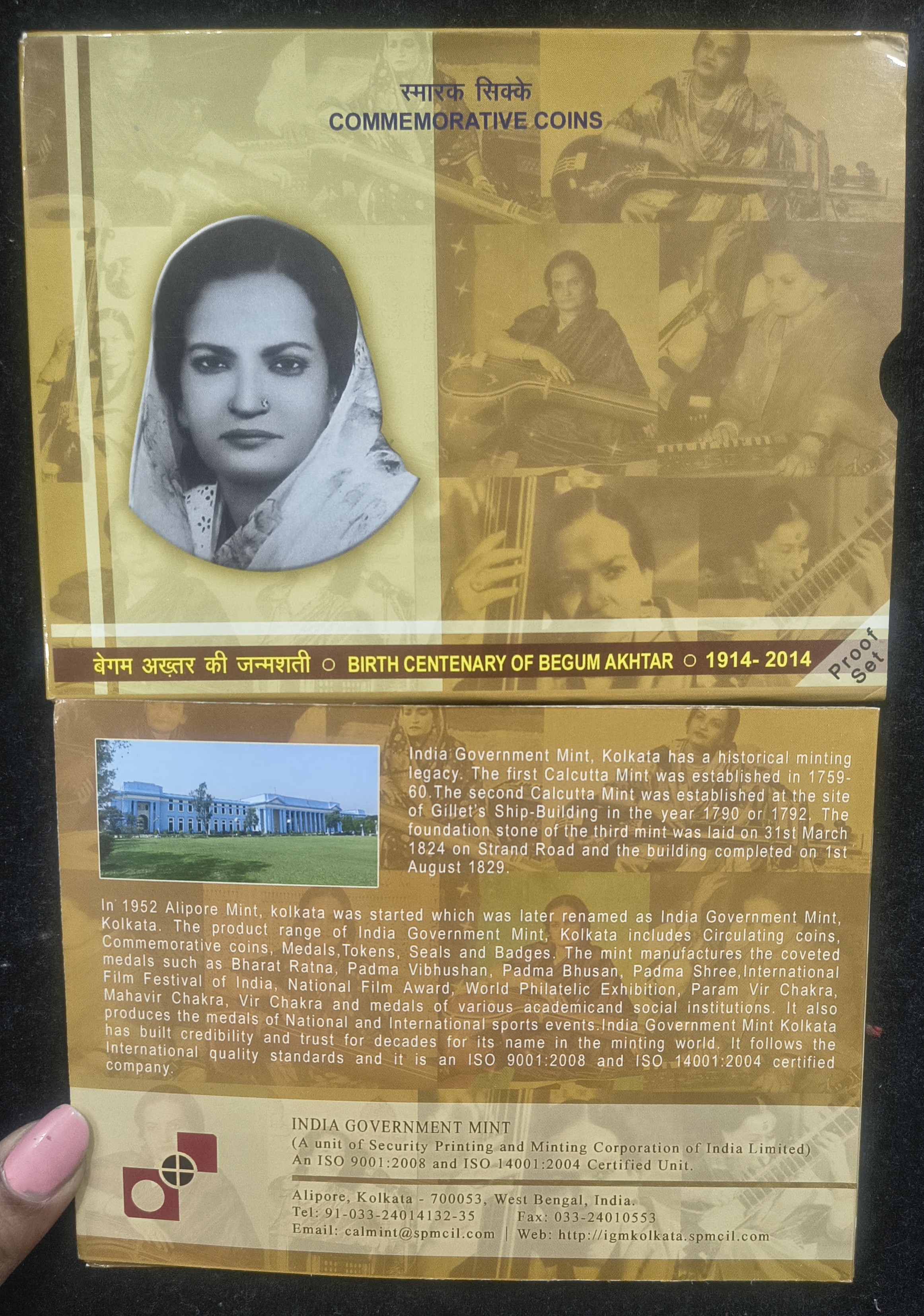 BIRTH CENTENARY OF BEGAM AKHTAR 1914-2014 KOLKATA MINT RARE 2 COINS (( PROOF SET ))