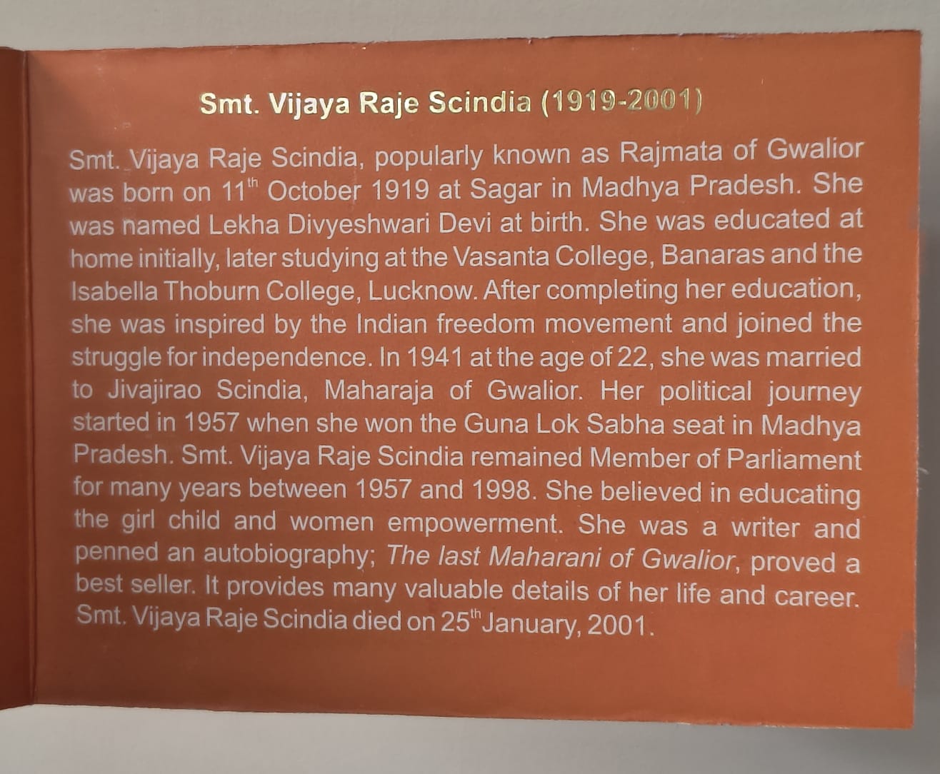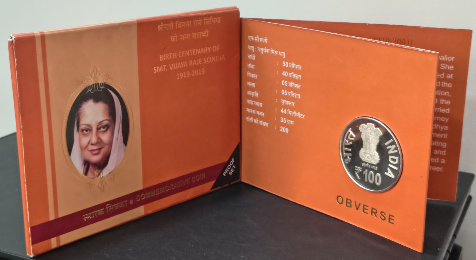 BIRTH CENTENARY OF SMT. VIJAYA RAJE SCINDA 1919-2019 KOLKATA MINT RARE ((PROOF SET))