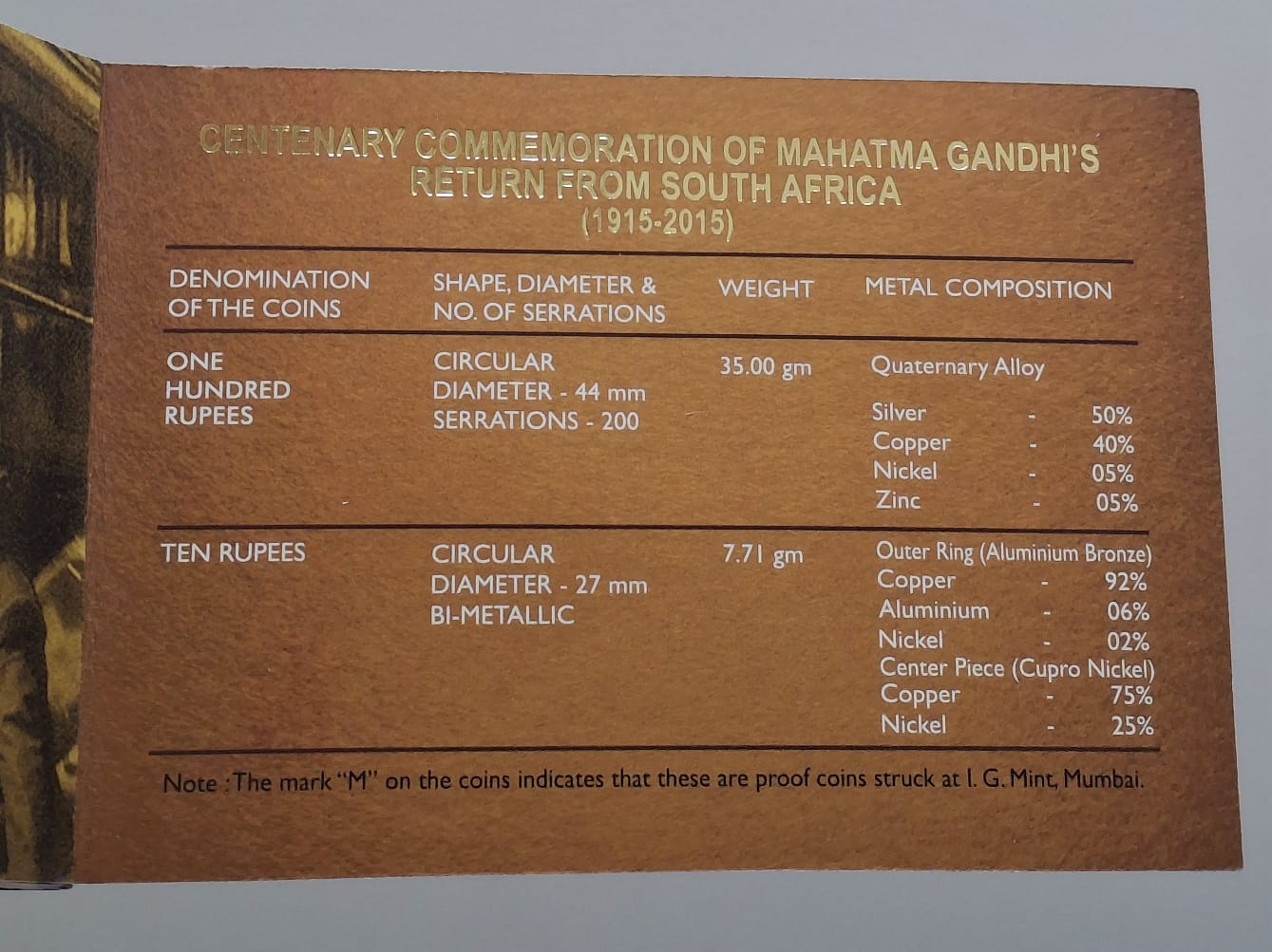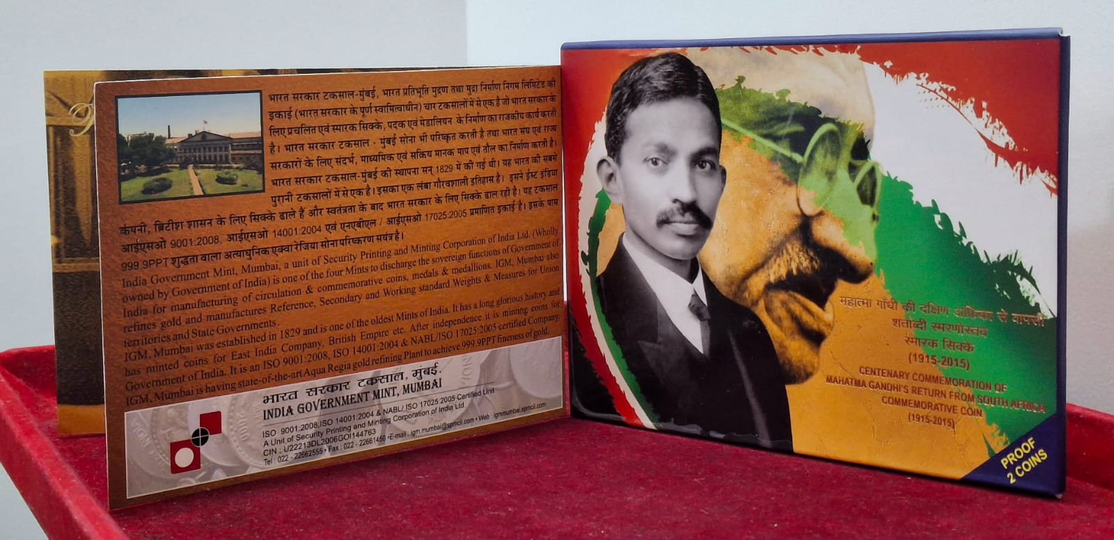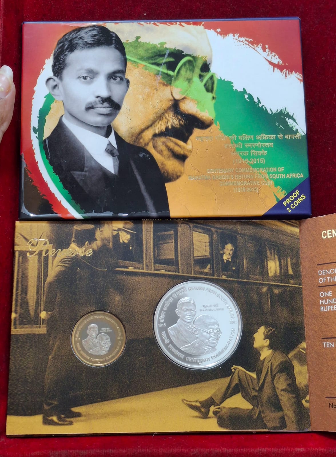CENTENARY COMMEMORATION OF MAHATMA GANDHI’S RETURN FROM SOUTH AFRICA 2015 MUMBAI MINT RARE 2 COINS ((PROOF SET))