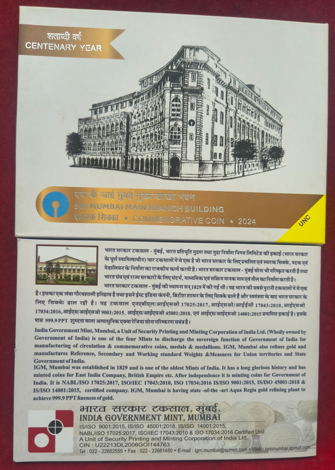 Centenary Year SBI Mumbai Main Branch Building 2024 MUMBAI MINT RARE ( UNC SET)