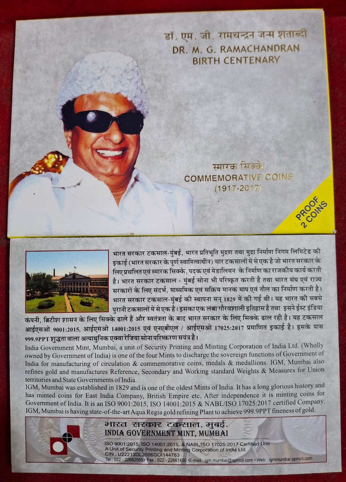 Dr. M. G .Ramachandran ( proof set )2 coin Mumbai mint