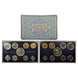 Proof set of 9 coins, 10 rupees, 1 rupee, 50 paise, 20 paise, 10 paise, 5 paise, 3 paise, 2 paise and 1 paisa, Bombay mint, RB 27, in original mint packing.