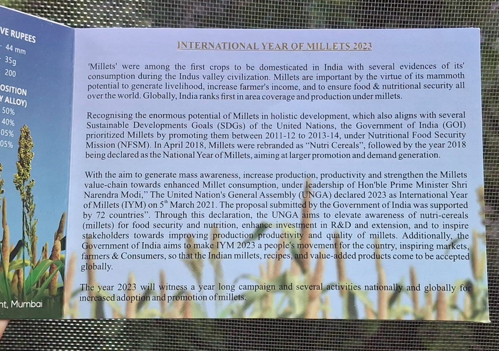 INTERNATIONAL YEAR OF MILLETS 2023 (PROOF SET) MUMBAI MINT