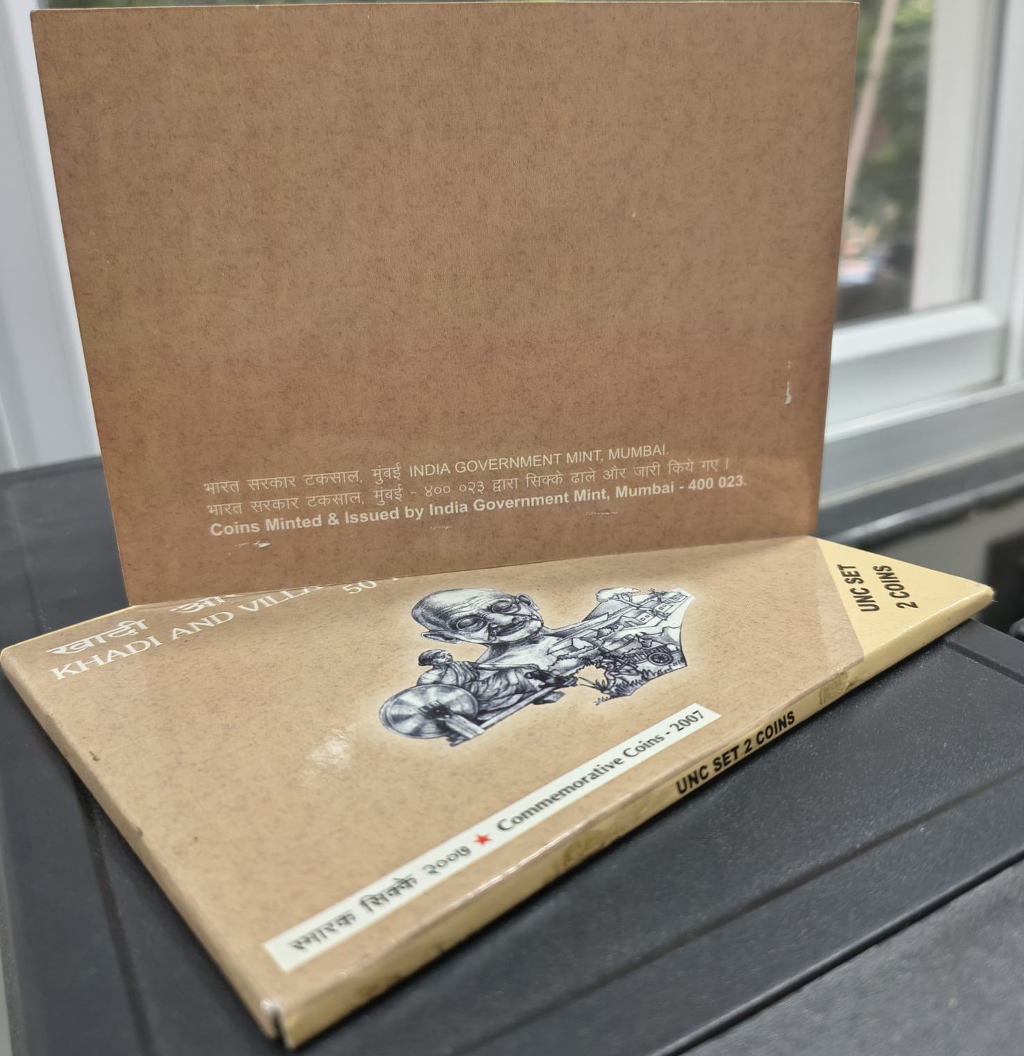 KHADI AND VILLAGE INDUSTRIES COMMISSION 50 YEARS RARE 2 COINS ( UNC SET ) MUMBAI MINT