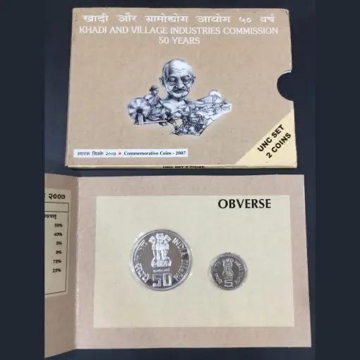 Khadi & Village Industries Commission 50 Years Unc Set 2 coin set Mumbai Mint