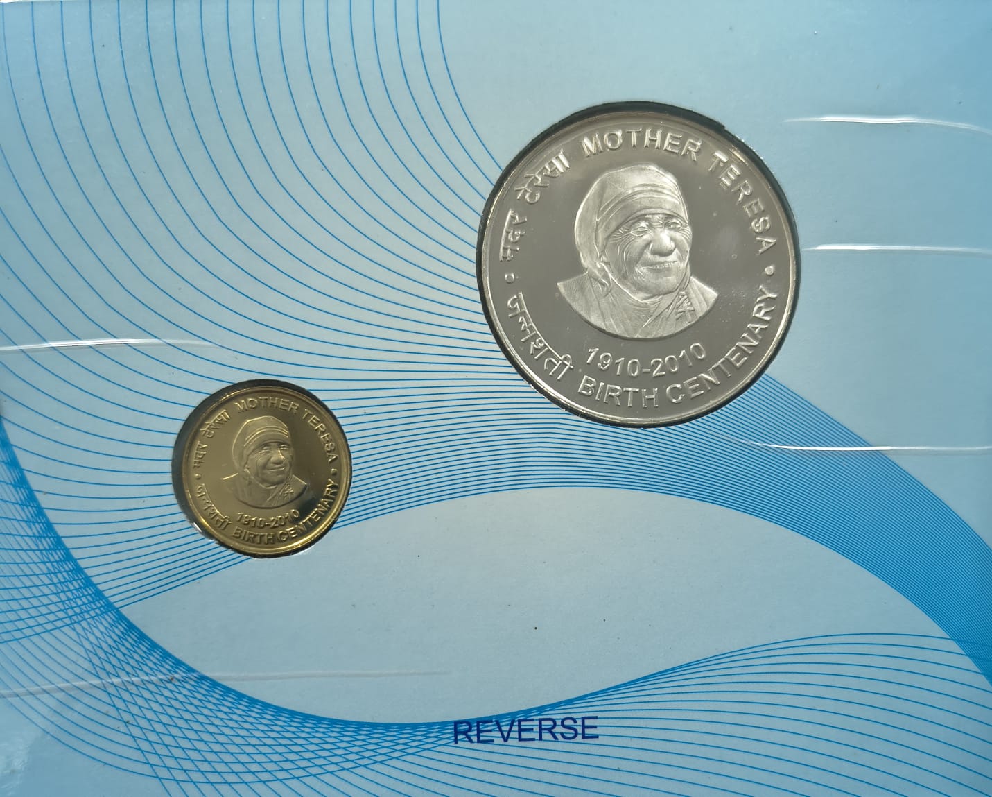 MOTHER TERESA BIRTH CENTENARY 1910-2010 RARE 2 COINS ( UNC SET ) KOLKATA MINT