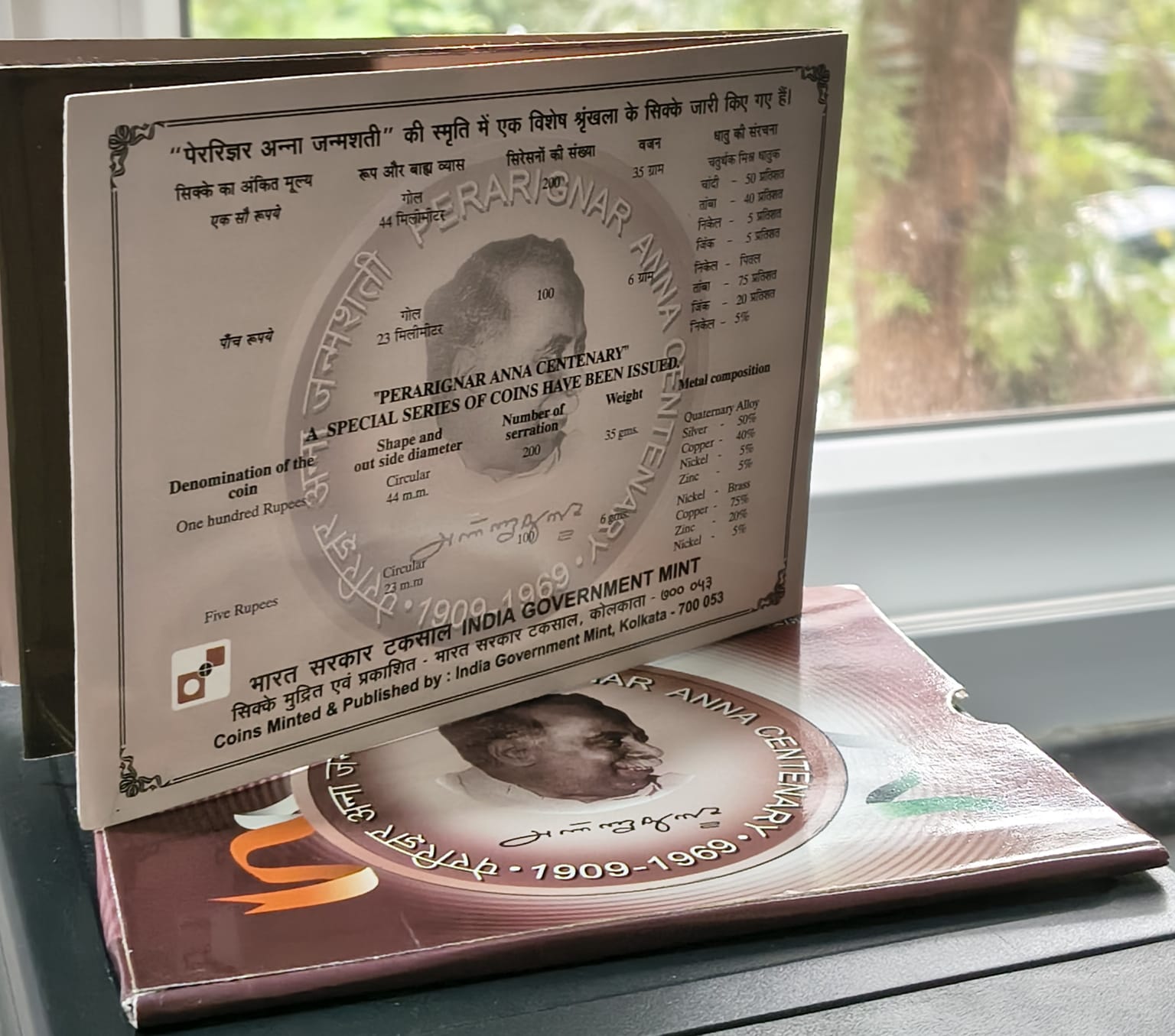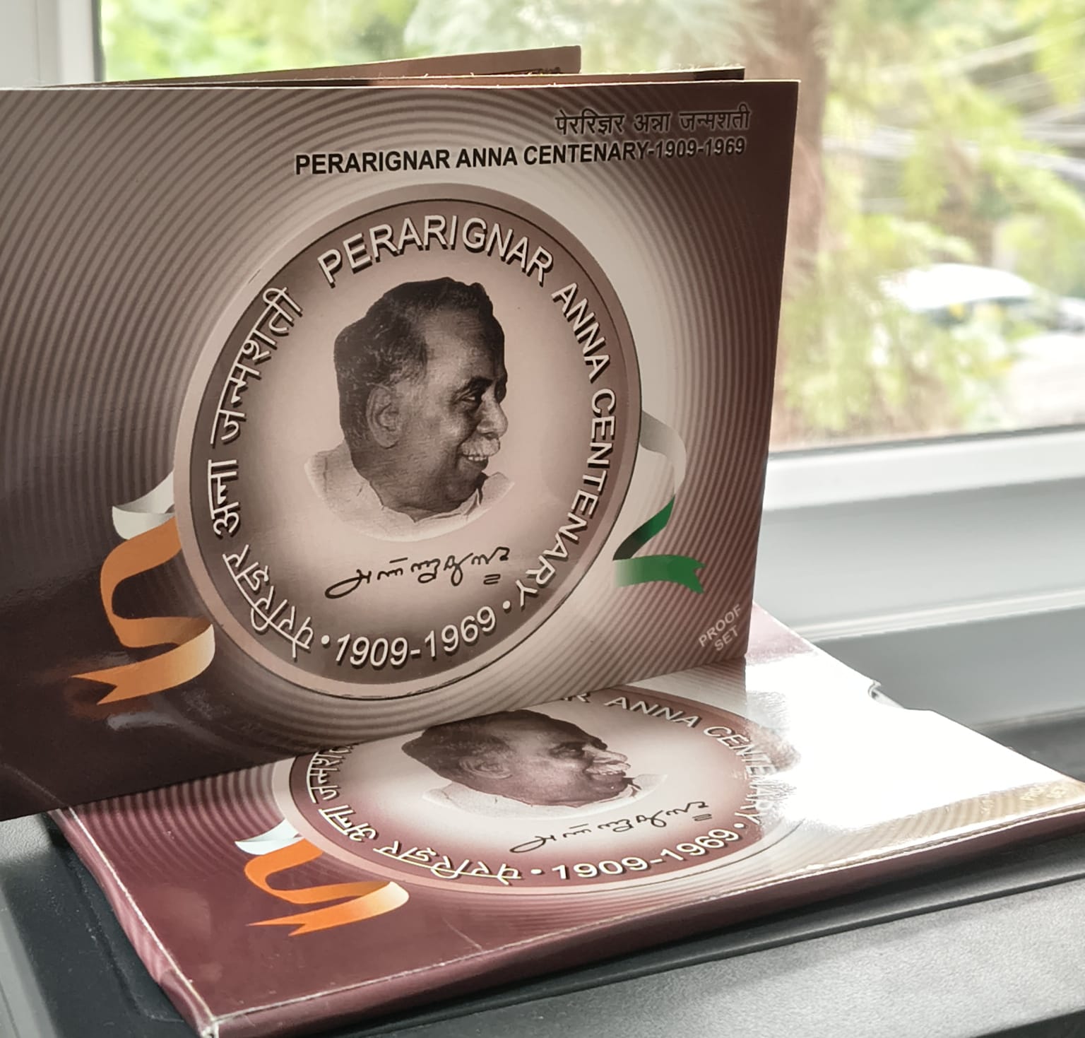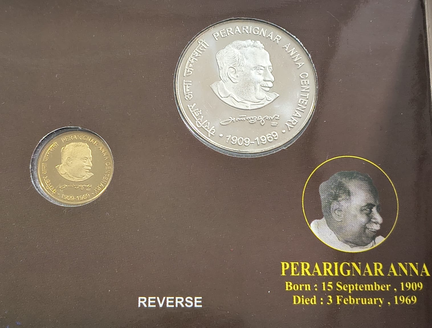 PERARIGNAR ANNA CENTENARY 1909- 1969 RARE 2 COINS (PROOF SET) KOLKATA MINT