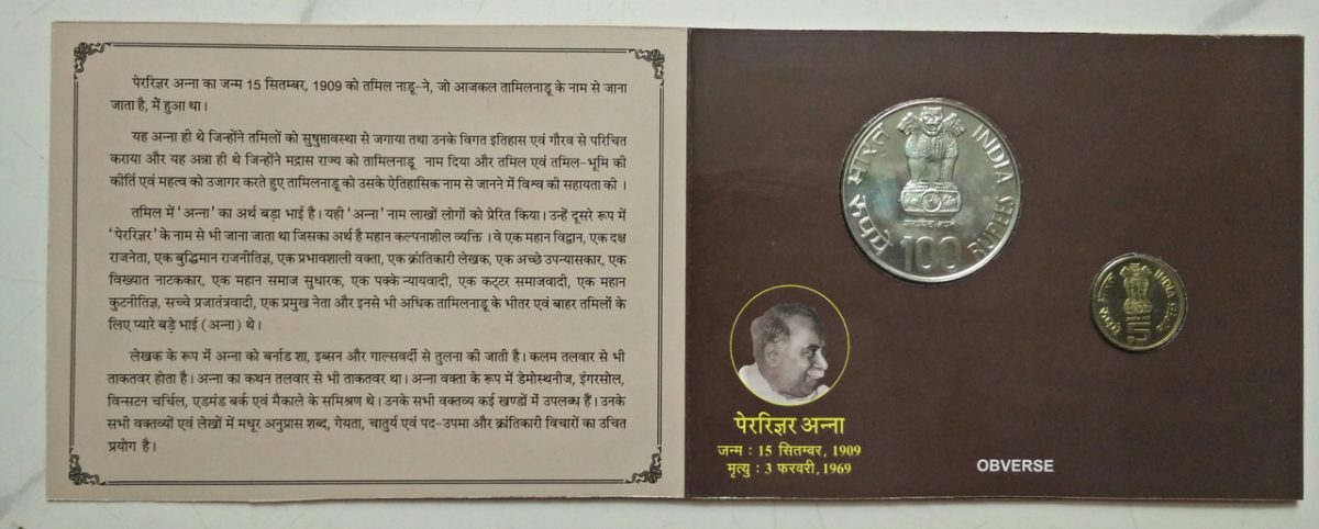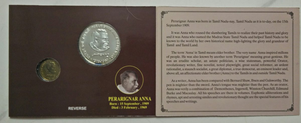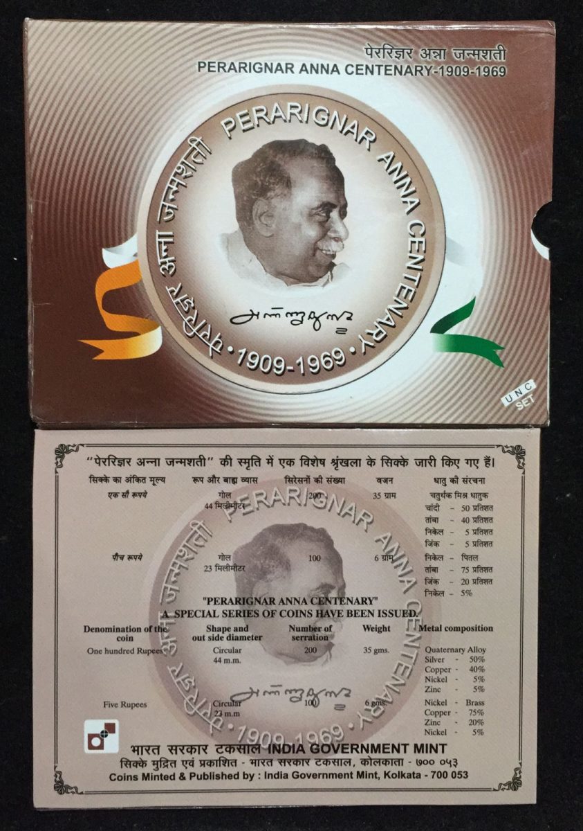 Perarignar Anna centenary (UNC 2 COIN SET) kolkata mint