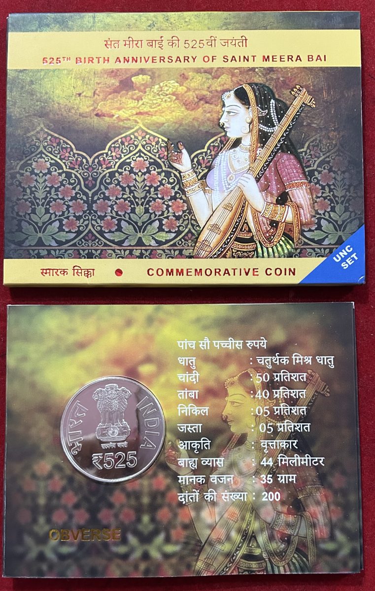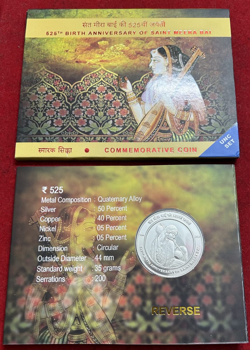 Rs 525 unc Coin Set 525th Anniversary of Saint Meerabai Very Unique and Rare
