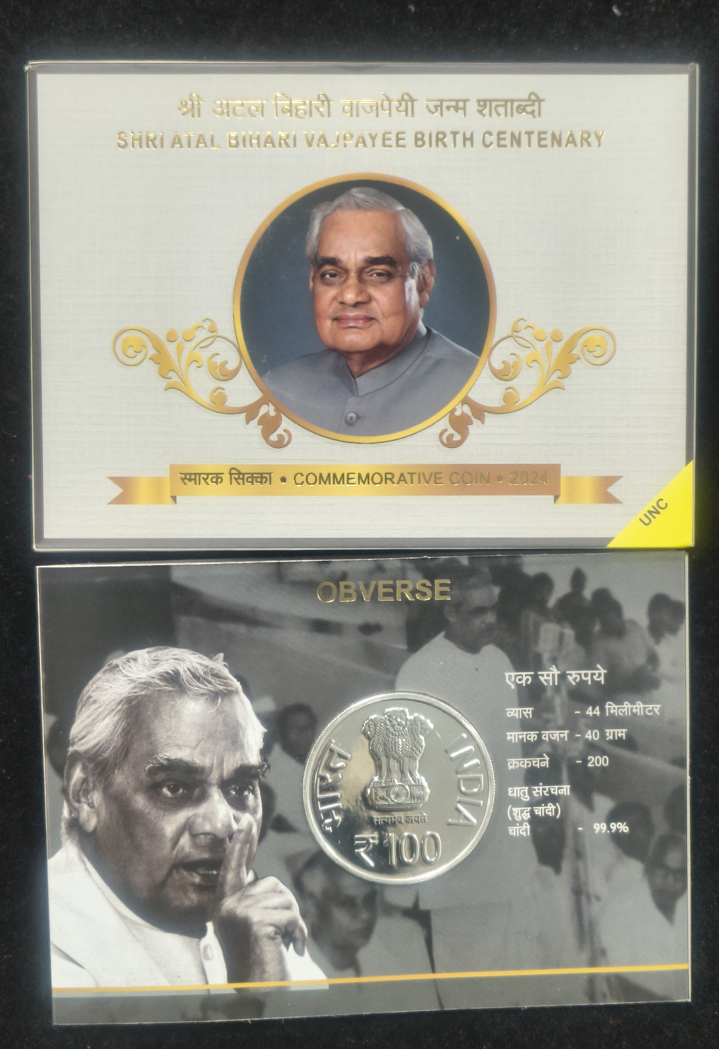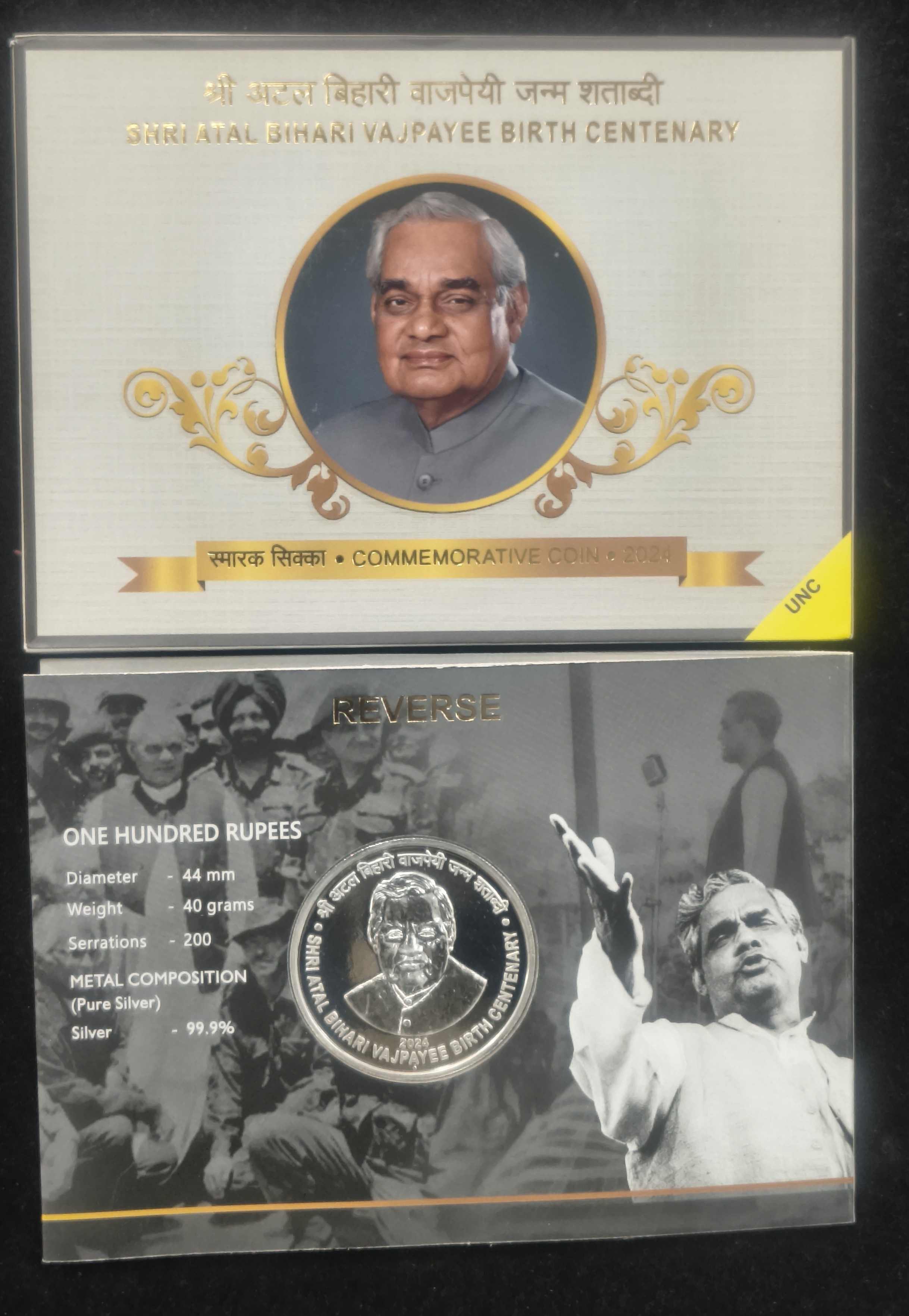 SHRI ATAL BIHARI VAJPAYEE BIRTH CENTENARY – 2024 MUMBAI MINT RARE {40 GRAM SILVER} COIN ((UNC SET))