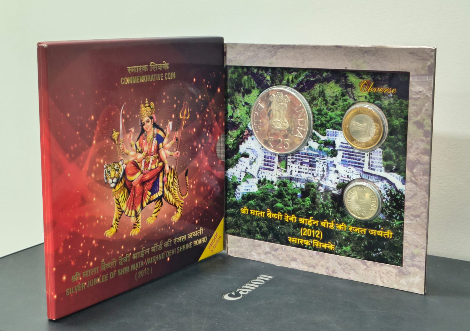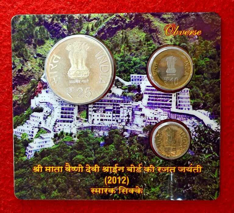 SILVER JUBILEE OF SHRI MATA VAISHNO DEVI SHRINE BOARD 2012 MUMBAI MINT RARE 3 Coins (Rs.25, Rs.10, Rs.5) ((PROOF SET))