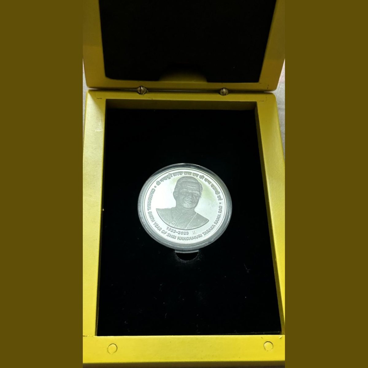 100 Rs Wooden Box Centennial Birth year Of Shri Nandamuri Tarak Rama Rao Coin RARE