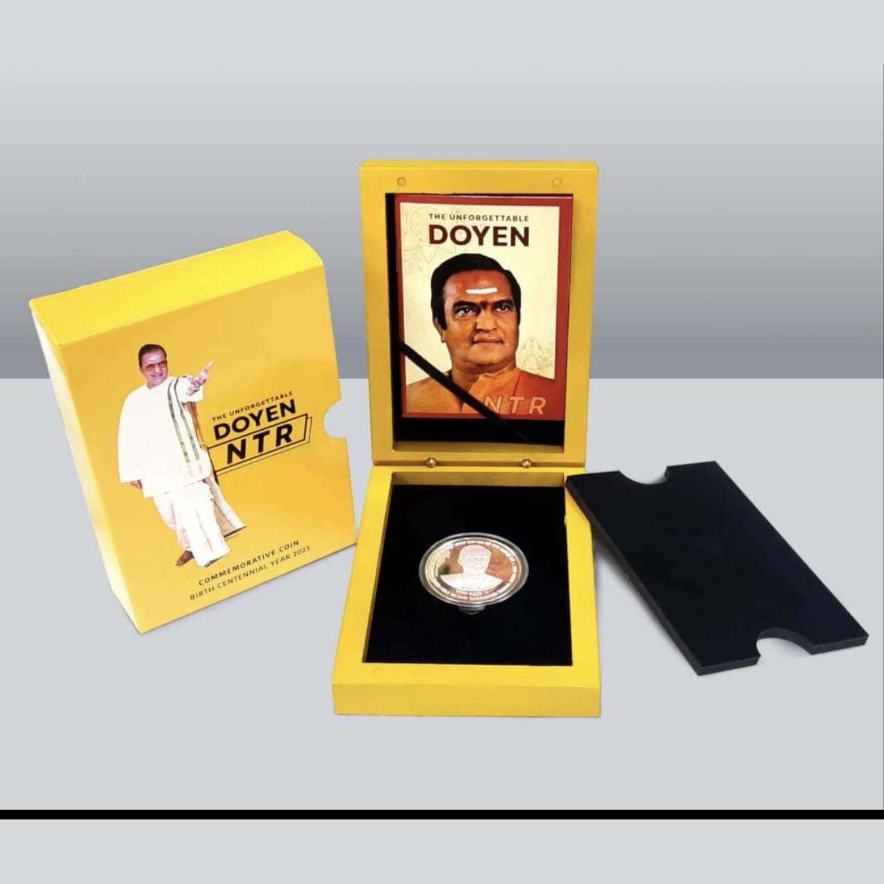Immerse yourself in the rich history and legacy with this exquisite collectible – the 100 Rupee coin housed in a wooden box, commemorating the centennial birth year of Shri Nandamuri Tarak Rama Rao. Issued with a denomination of 100 Rupees and featuring the signature of B Rama Rau, this coin stands as a rare and significant piece in the world of numismatics. The coin pays homage to a legendary figure, capturing a momentous milestone in Indian history. Crafted with precision and care, this coin holds immense collectible value, attracting enthusiasts and collectors alike with its historical significance and rarity. The wooden box adds a touch of elegance, preserving the coin in its original state. Ideal for those seeking a unique addition to their collection, this coin is a testament to a remarkable era and individual, making it a prized possession for any collector or history aficionado.