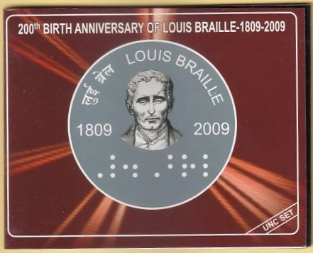 2 Rupees Braille louis 2009 Hyderabad ★ Mint Unc Blister Rare