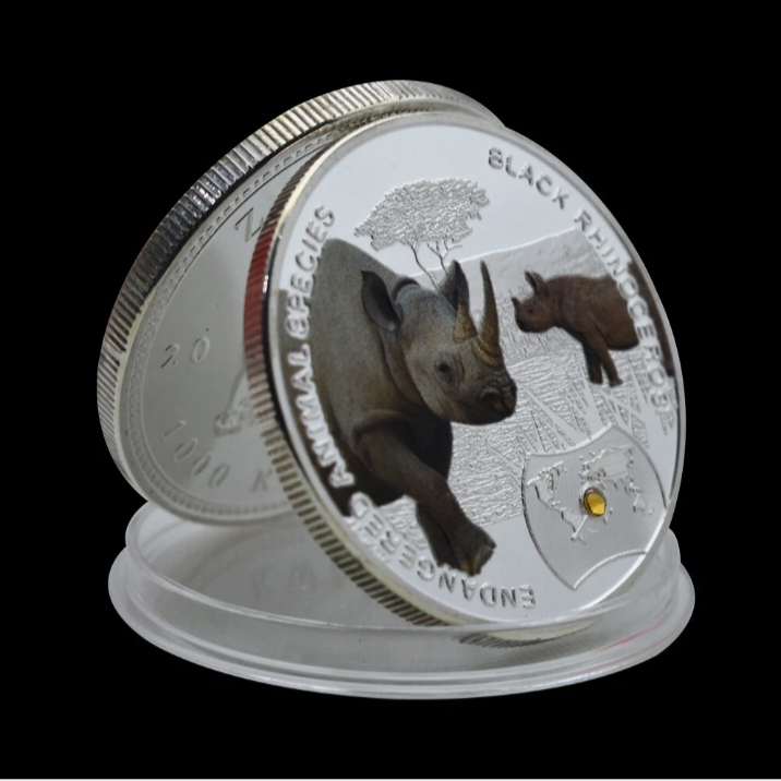- Extremely Rare 1000 KWACH 2014 Year Endangered Animal Species Black Rhinoceros Africa Protect Animal Proof Coin Republic Of Zambia