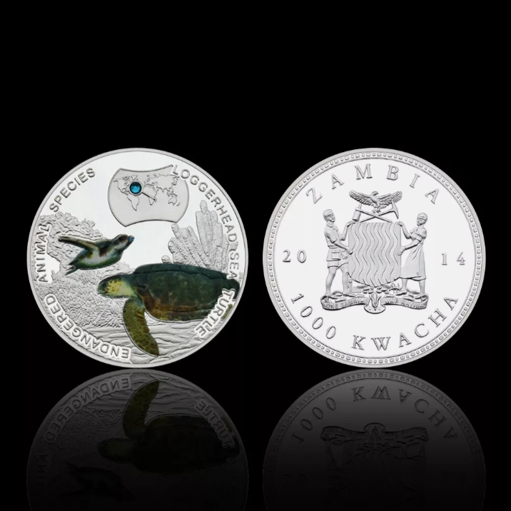 - Extremely Rare 1000 KWACH 2014 Year Endangered Rare Loggerhead Sea Turtle Endangered Animal Commemorative Coin Republic Of Zambia