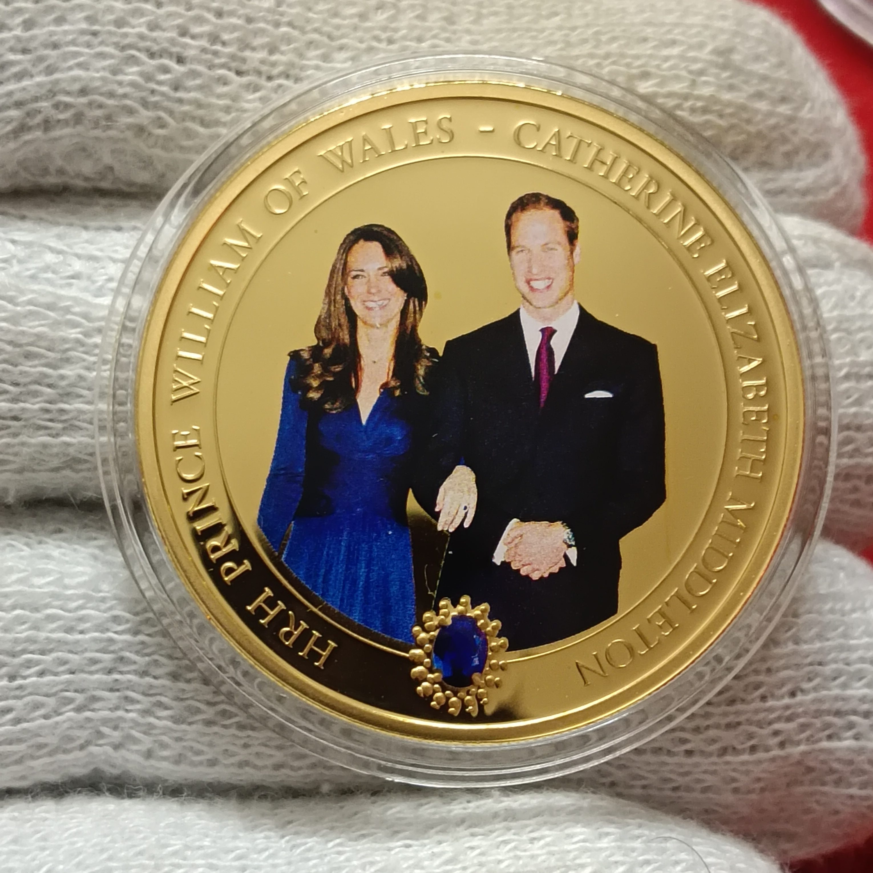 - Features: It’s a non-circulating coin, often gold-plated, and features a colorized image of Prince William and Catherine on the reverse, with an inset crystal. The obverse typically features a bust of Queen Elizabeth II.