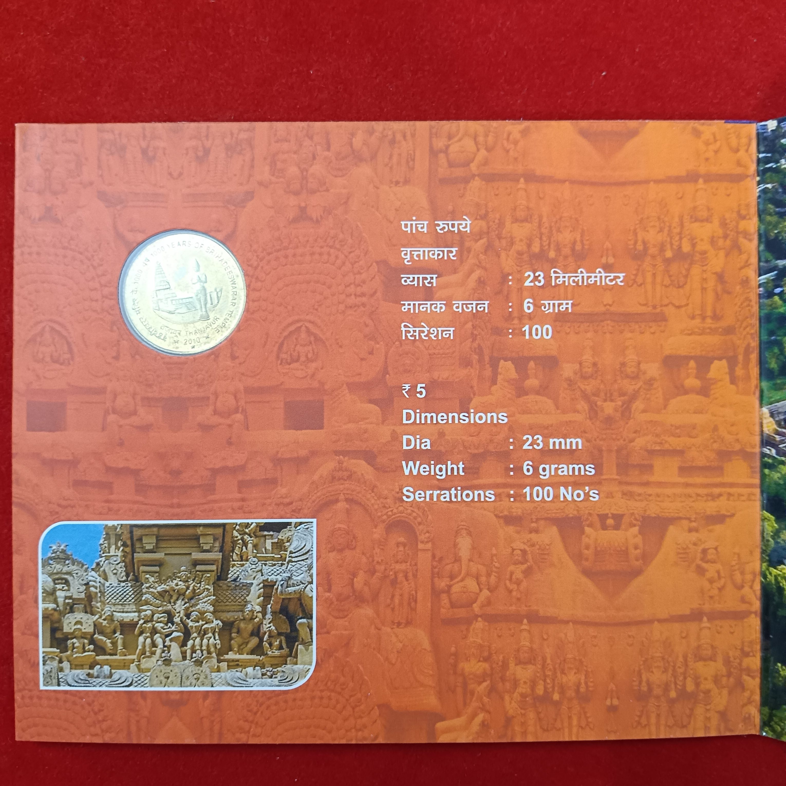 - Five Rs Rare Set One Thousand Years of Brihadeeswarar Temple Set 🔥 India Government Texal Hyderabad Mint