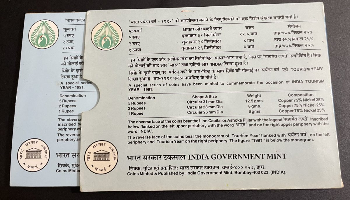 Proof Set 1991 India tourism year Three Coins Set EX Rare
