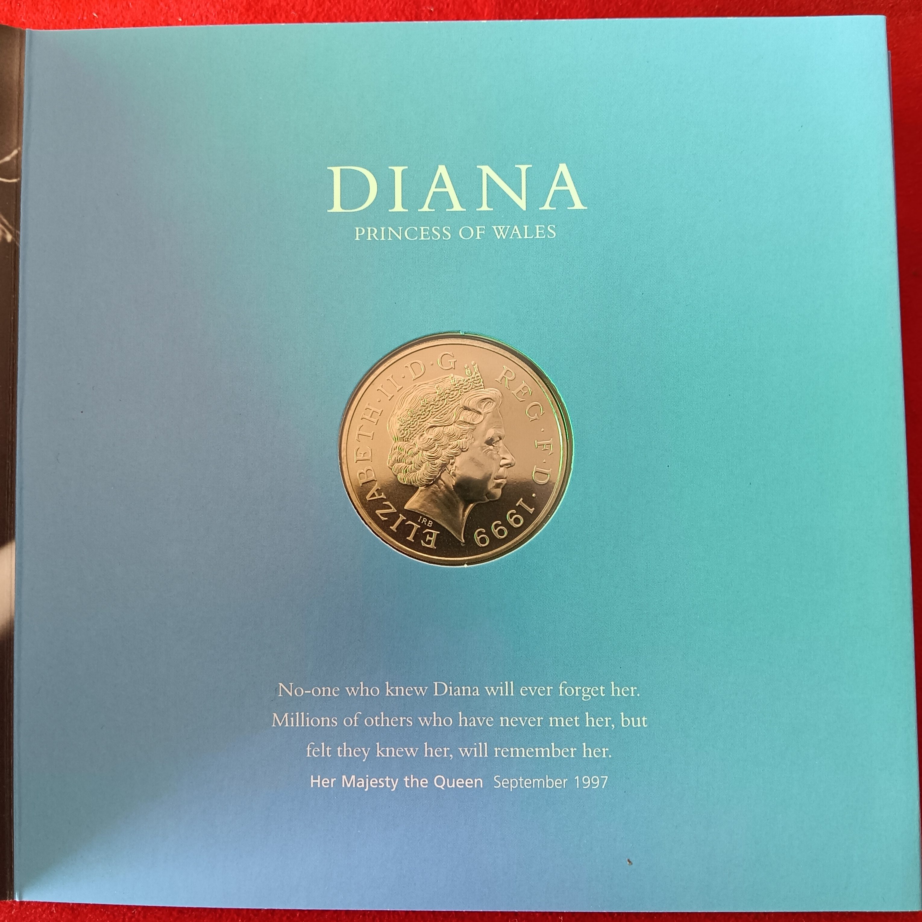- Rare Proof Coin DIANA Princess Of Wales Memorial Coin 1999 Year 5 Pounds Issued by British Royal Mint