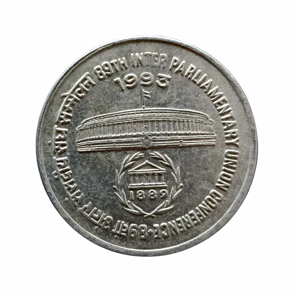 “In 1993, India issued a commemorative 1 Rupee coin to mark the 89th Inter-Parliamentary Union (IPU) Conference. This coin was released into general circulation on July 12, 1993.
