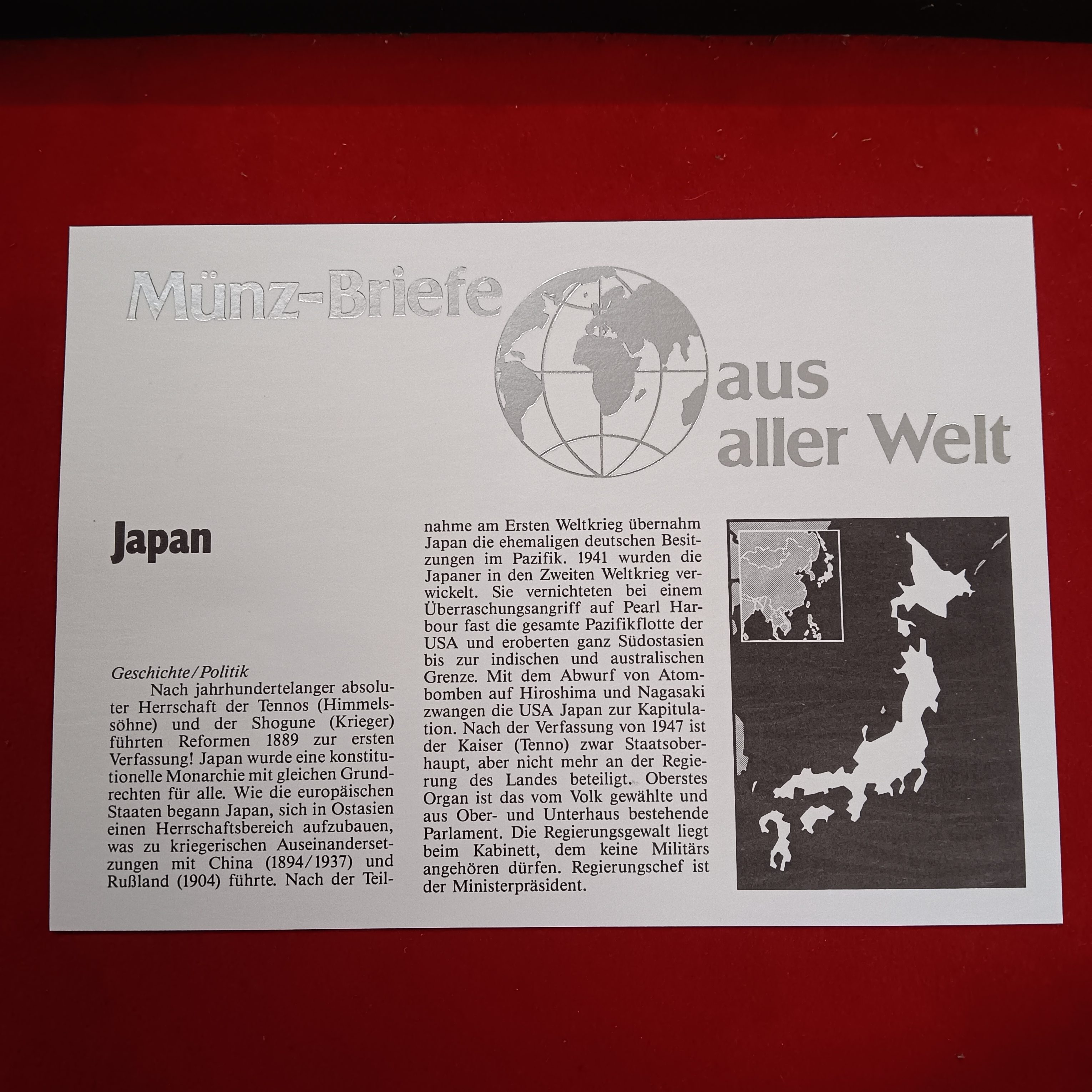 This collectible holds significant historical value, reflecting Japan’s legacy and heritage. The inclusion of a certificate further enhances its collectible appeal, providing assurance of its authenticity and provenance. With its impeccable condition and meticulous detailing, this item is sure to captivate both coin and stamp enthusiasts alike.