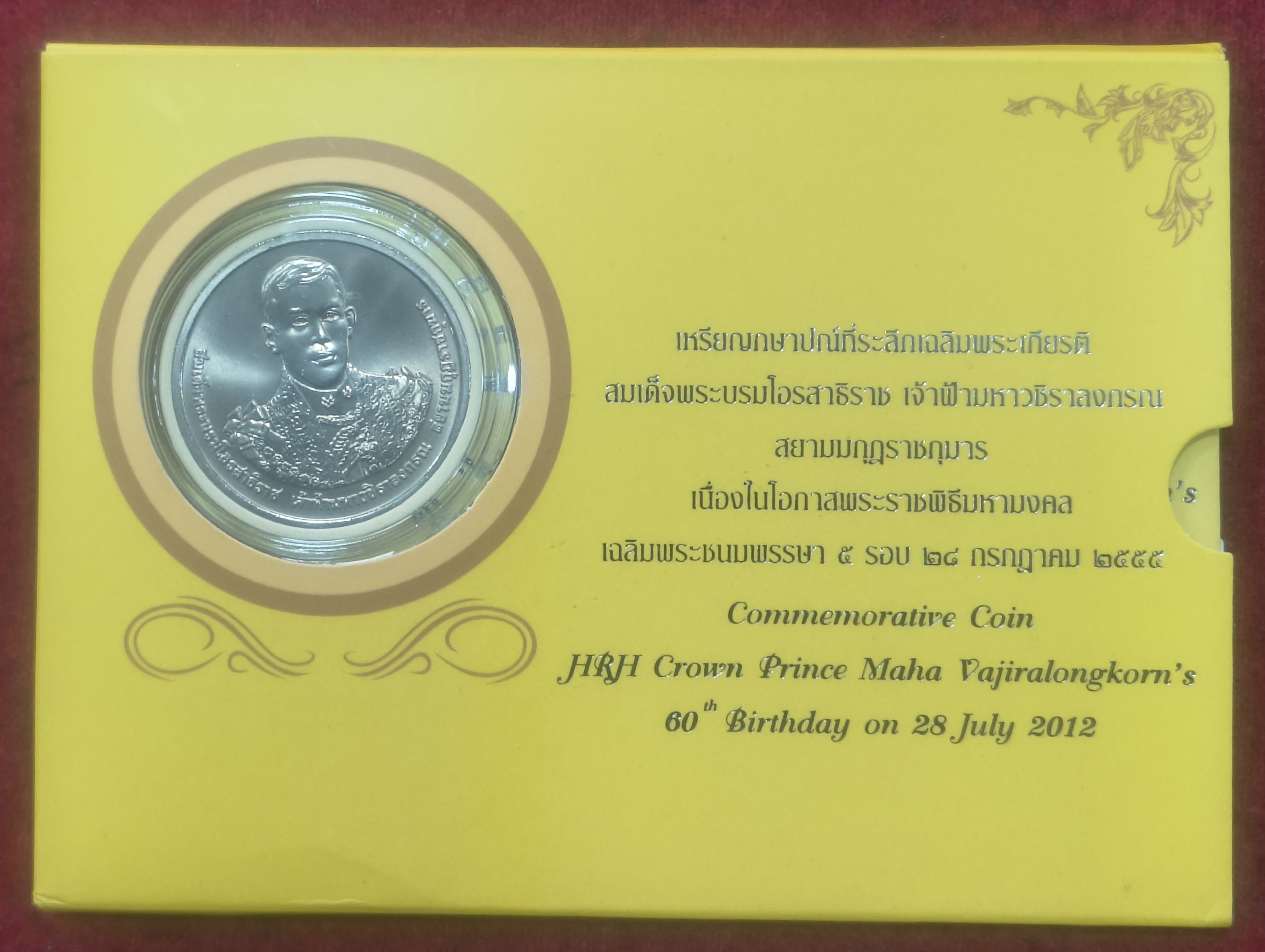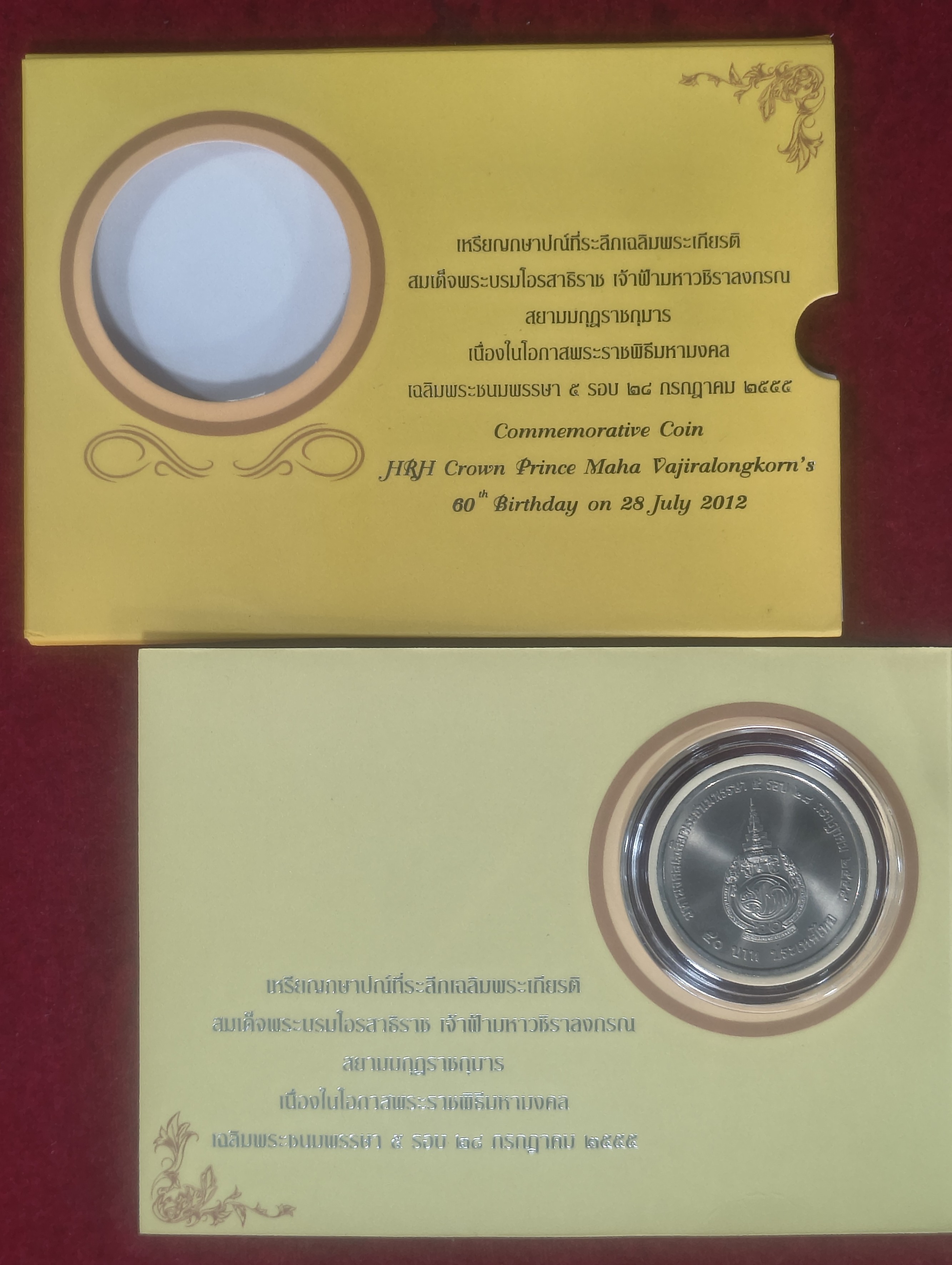 THAILAND 50 Baht 2012, HRH CROWN PRINCE MAHA VAJIRALONGKORN’S , 60th BIRTHDAY of RAMA IX RARE COIN WITH BEAUTIFUL FOLDER PACKAGING