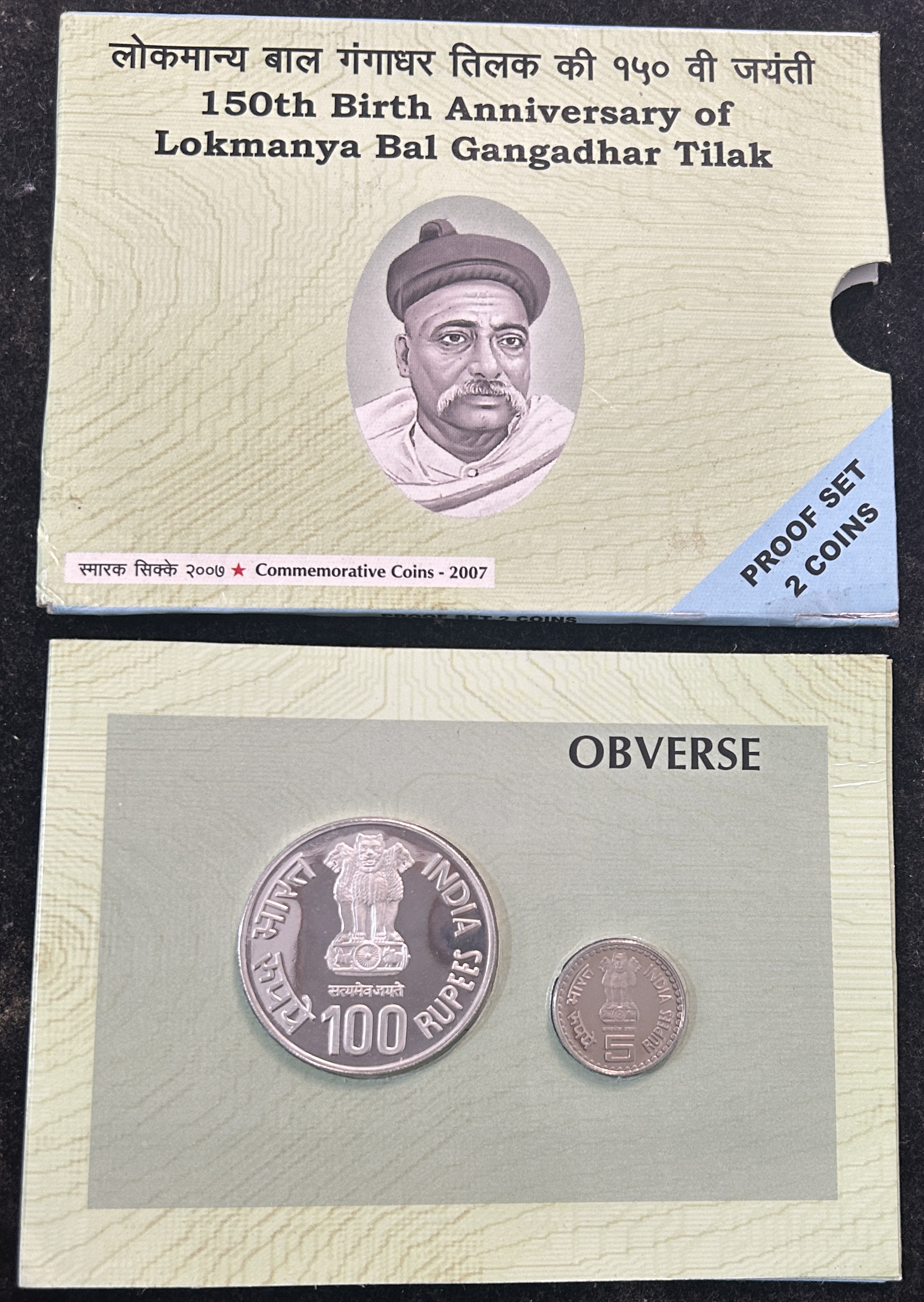Tilak 150th birth anniversary of Lokmanya proof 2 coin set