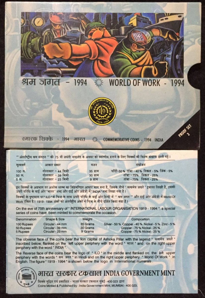 World of Work 1994 ( PROOF 3 COIN SET) Mumbai mint Rare set