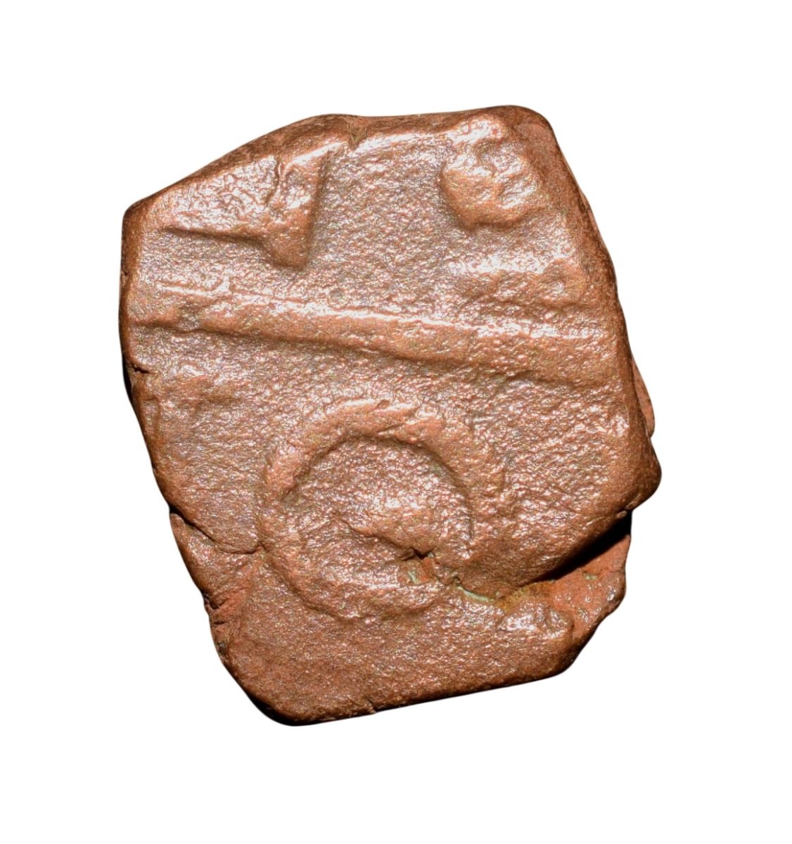 Indo-French, (AD 1695), Copper 1/2 Duit, Obv: Goddess Mahakali figure Facing, Rev: Tamil ‘Nakapattanam’, 0.62 Gms, 7.06 x 7.80 mm, (KM # 25), Extremely Fine, Rare.