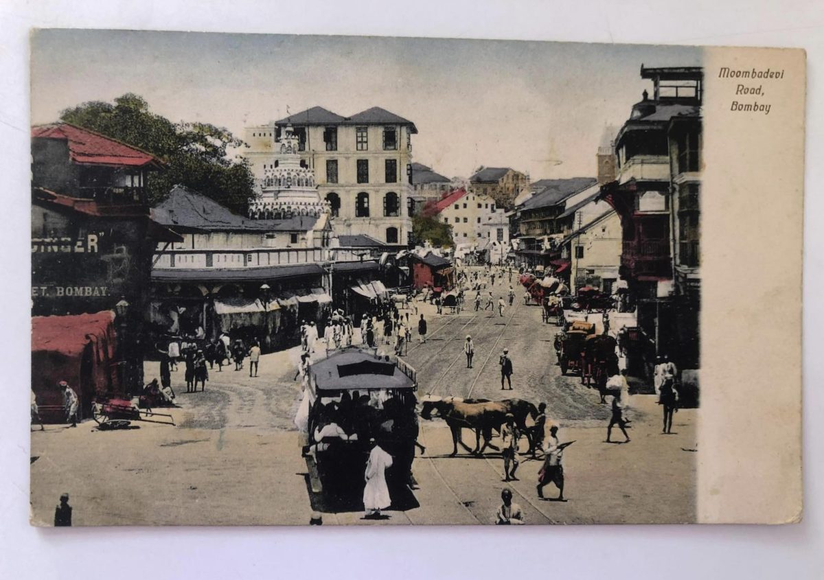 India vintage postcards series Moombadevi Road, Bombay Unique and Rare 19th Century Issue