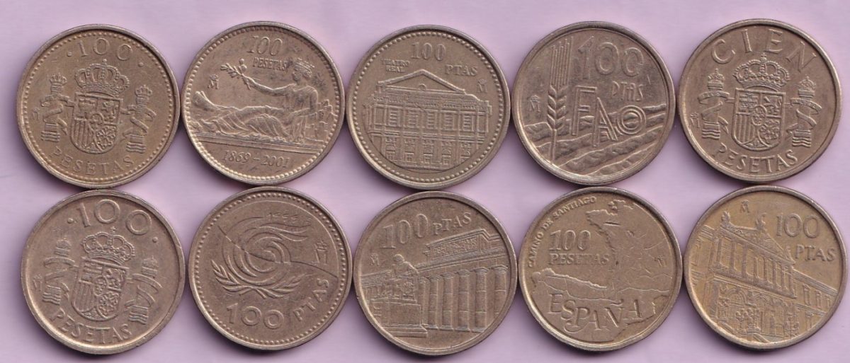 10 Different Commemorative Espana 100 Pesetas Top Condition Coin