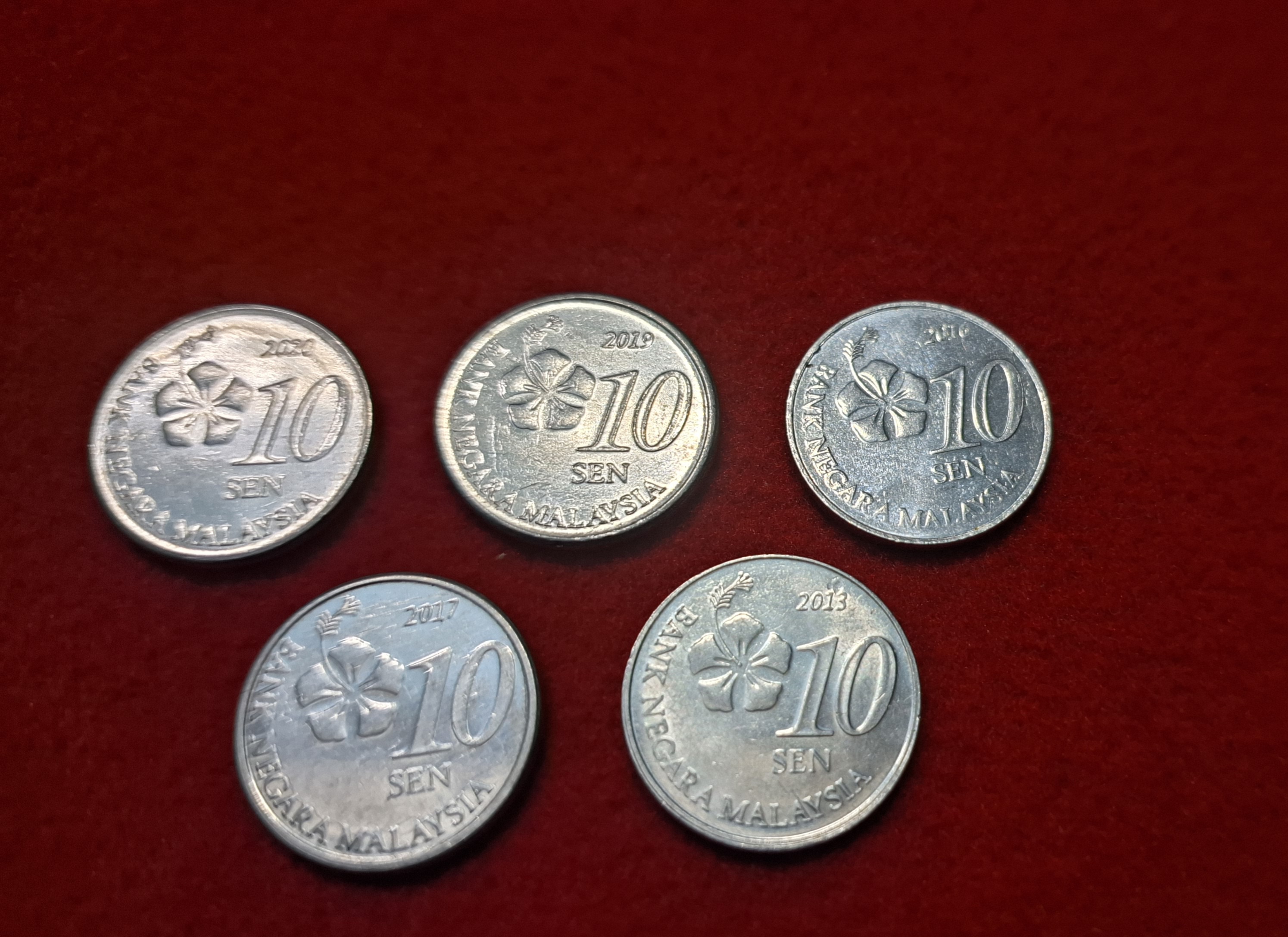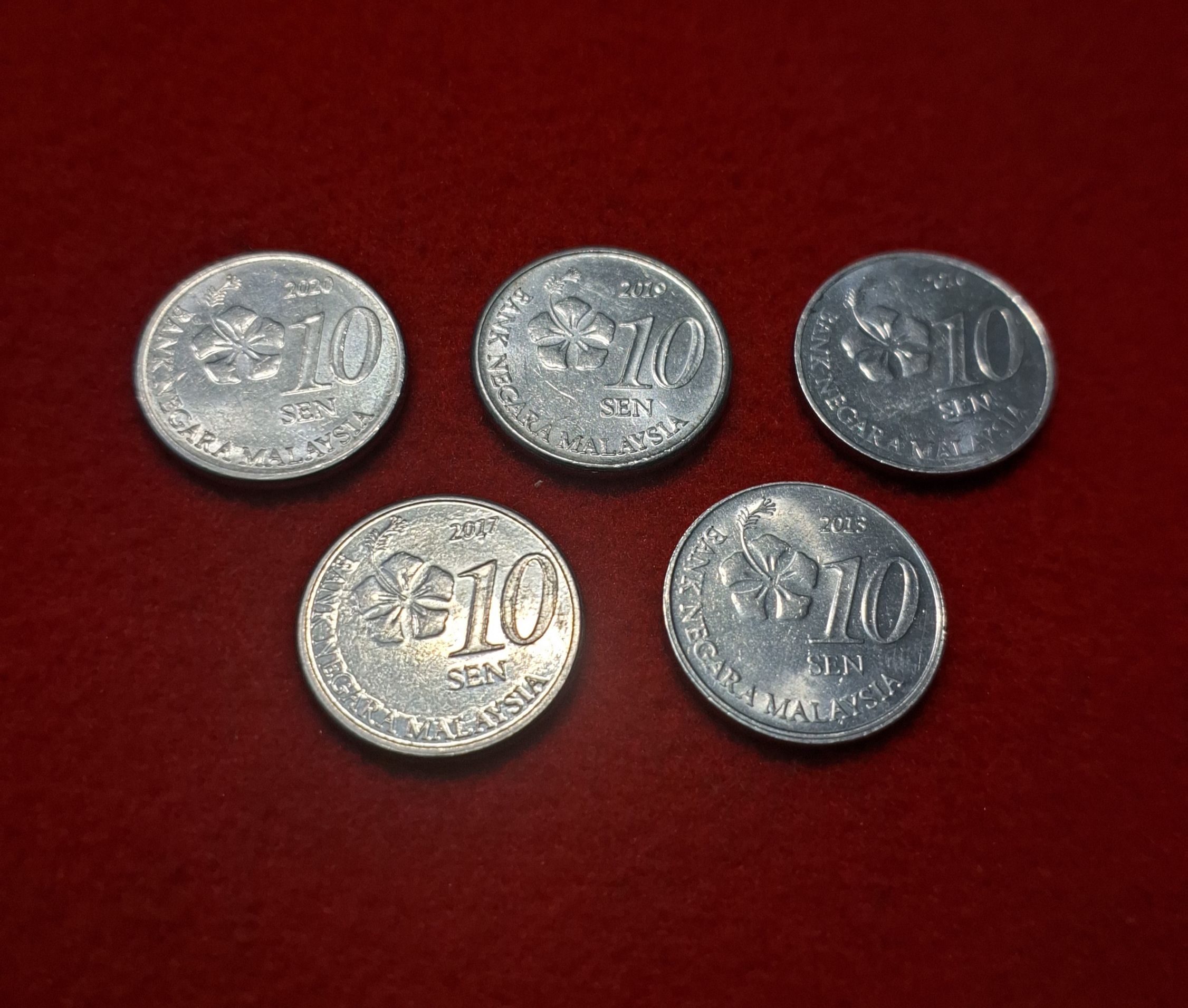 10 SEN MALAYSIA COIN 5 COIN SET UNC CONDITION