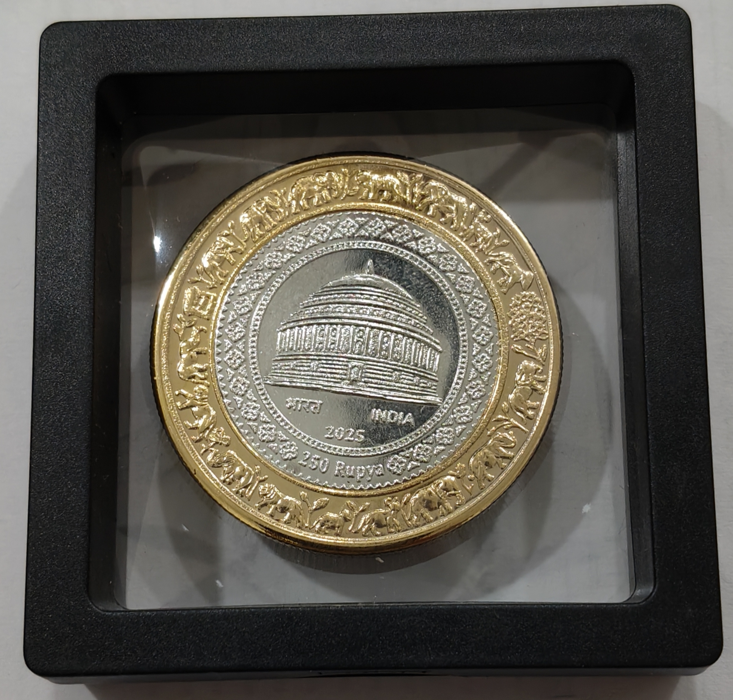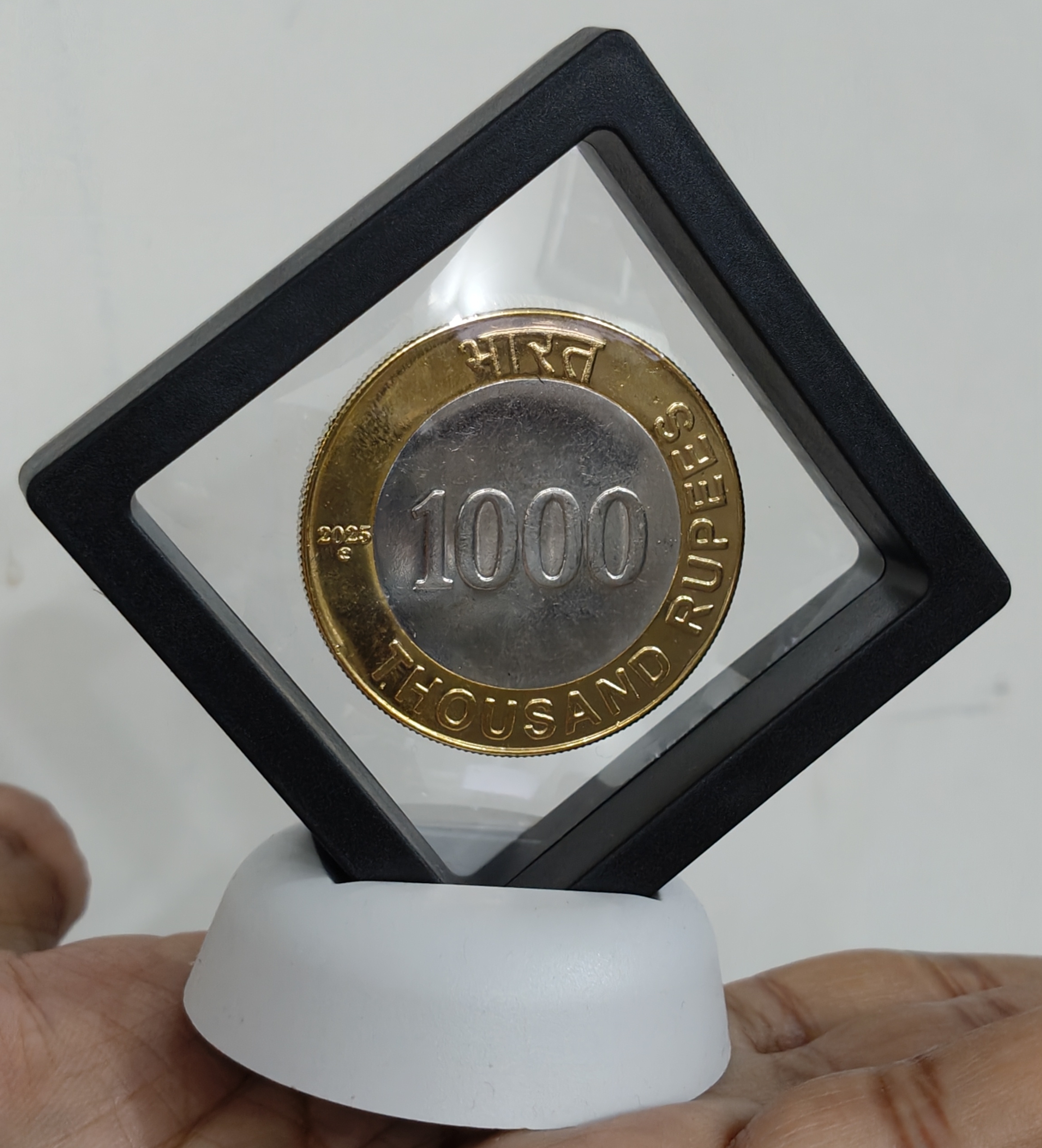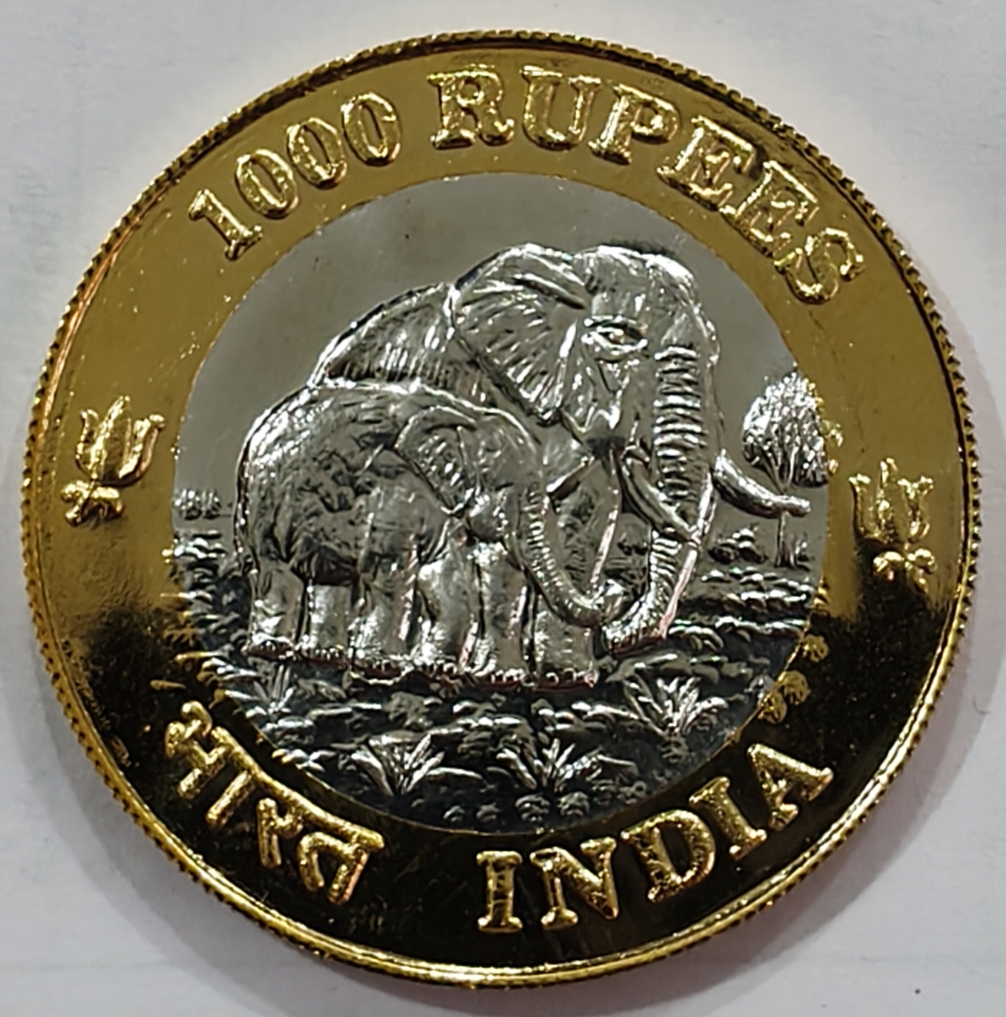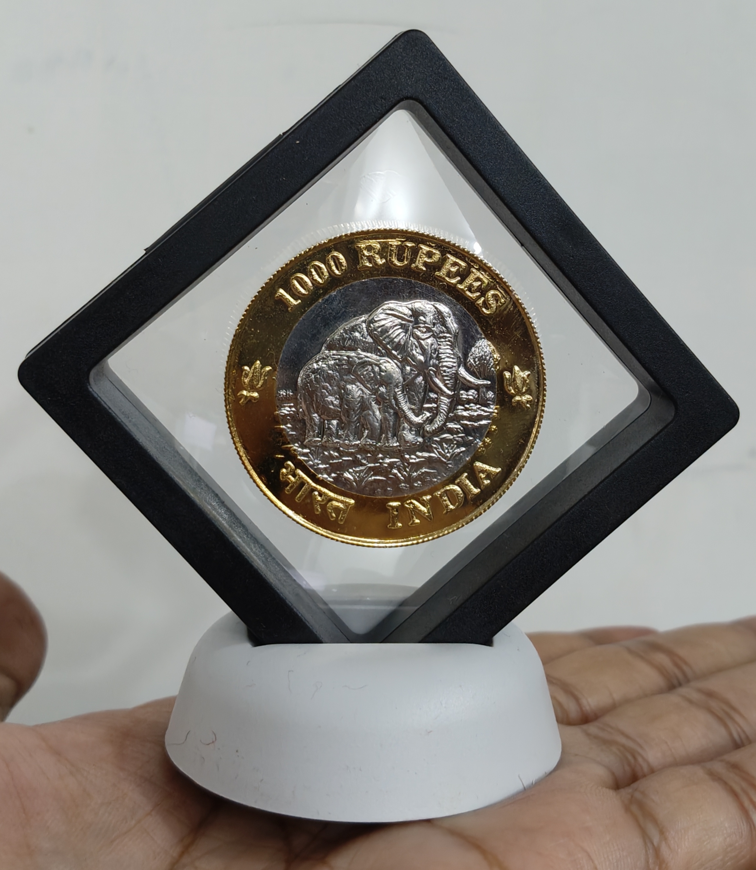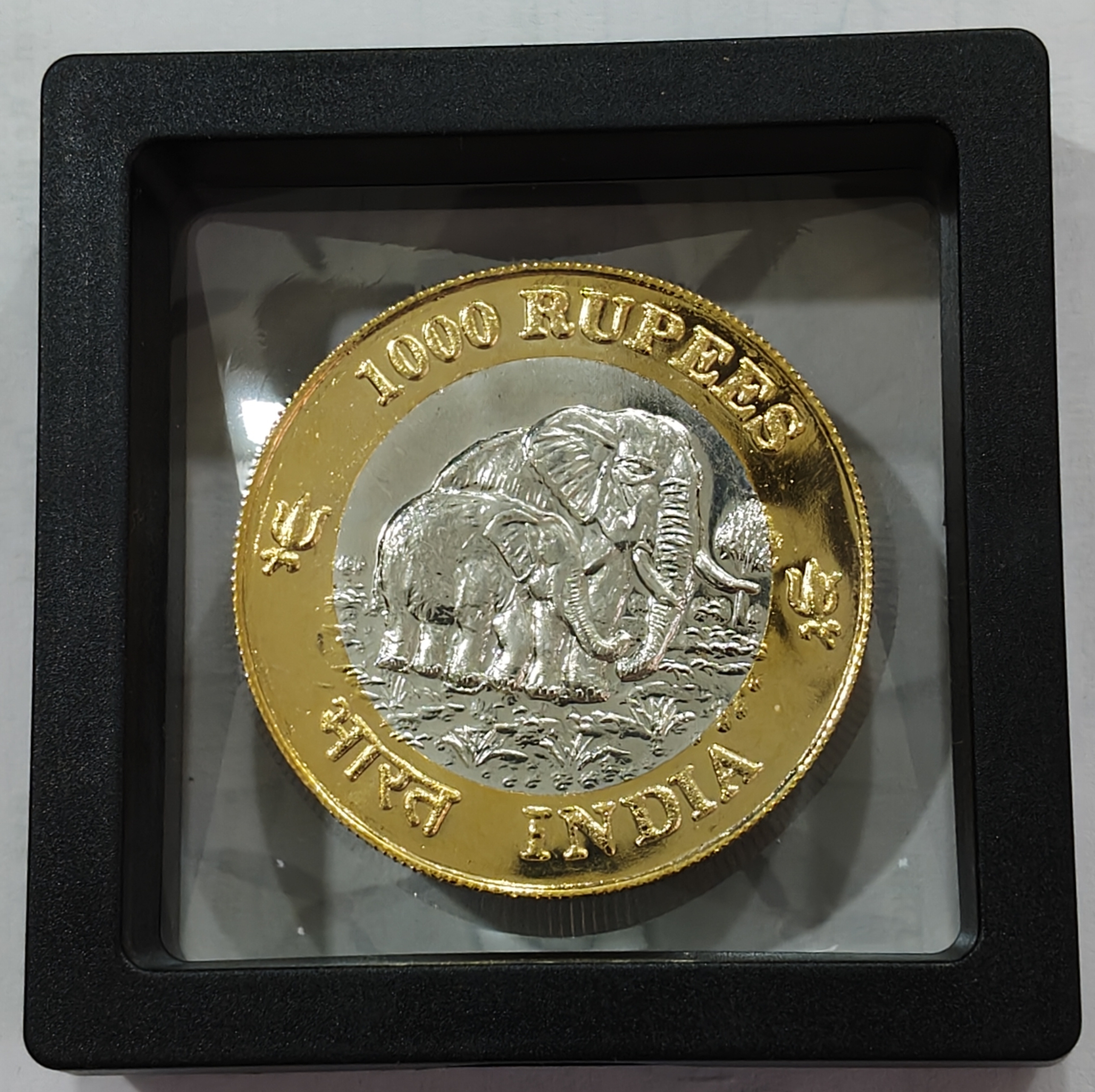 1000 Ruppes India Elephant 🐘 bymetalic madalion with box and stand