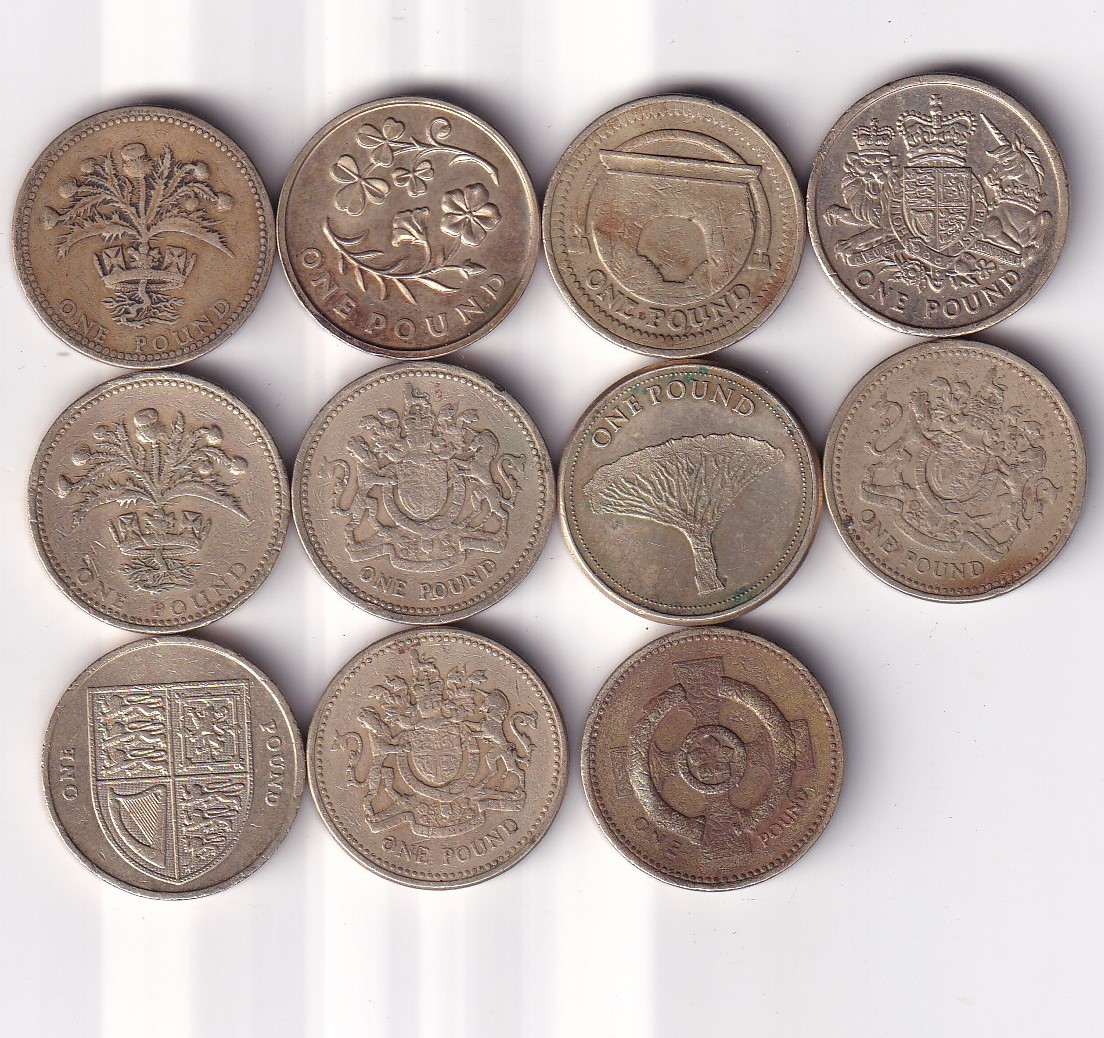 11 DIFFERENT ENGLAND ONE POUND COMMEMORATIVE ISSUE RARE COINS SET