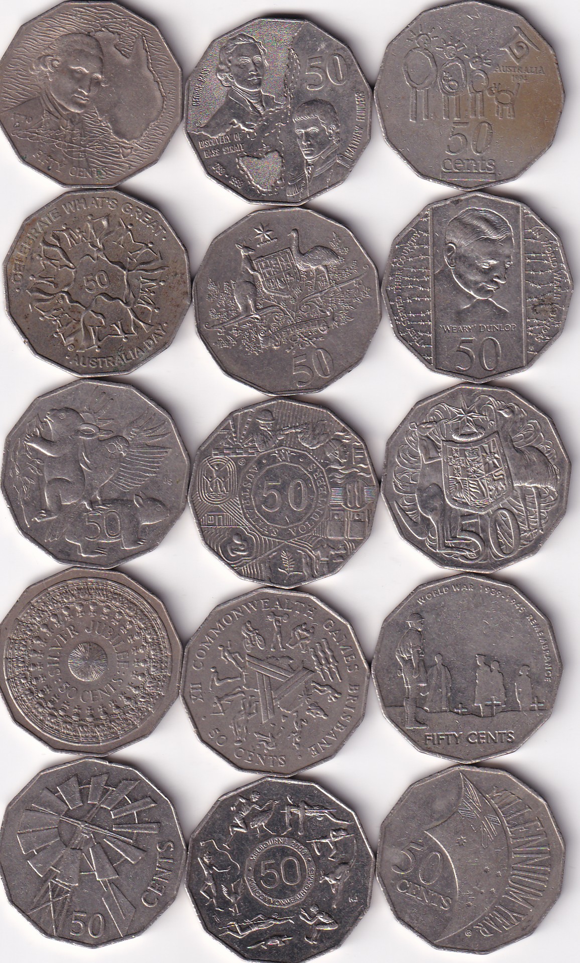 15 Different Australia 50 Cents (Elizabeth II) commevrative Coin Set #D-185