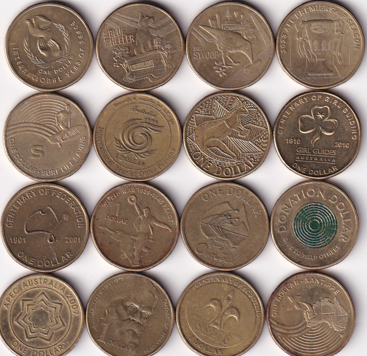 16 Different Commemorative Australia One Dollar Coin Set#Z-126