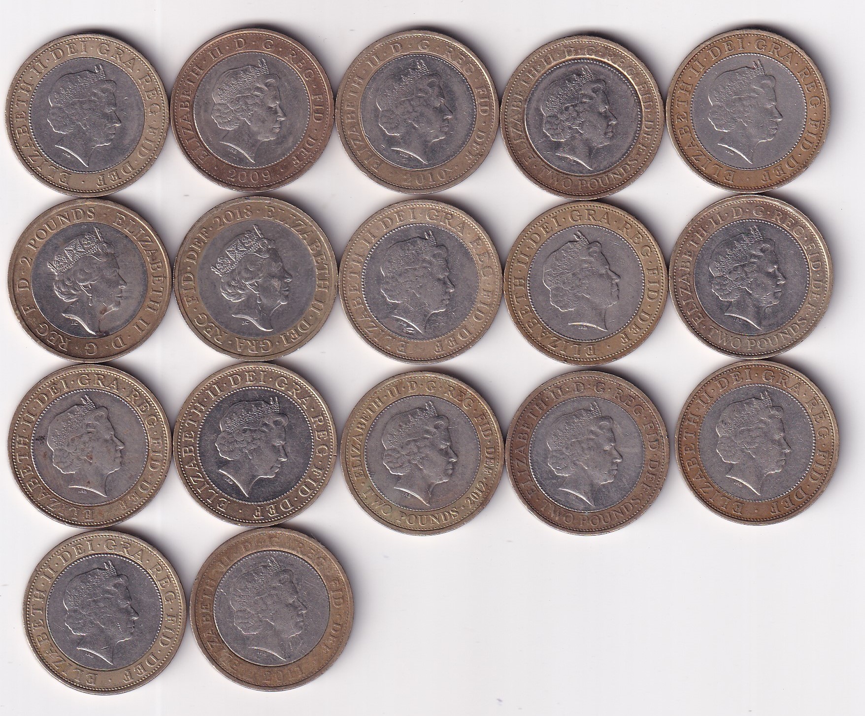 17 DIFFERENT COMMEMORATIVE ENGLAND 2 POUND BYMETALLIC COIN SET #Z-97