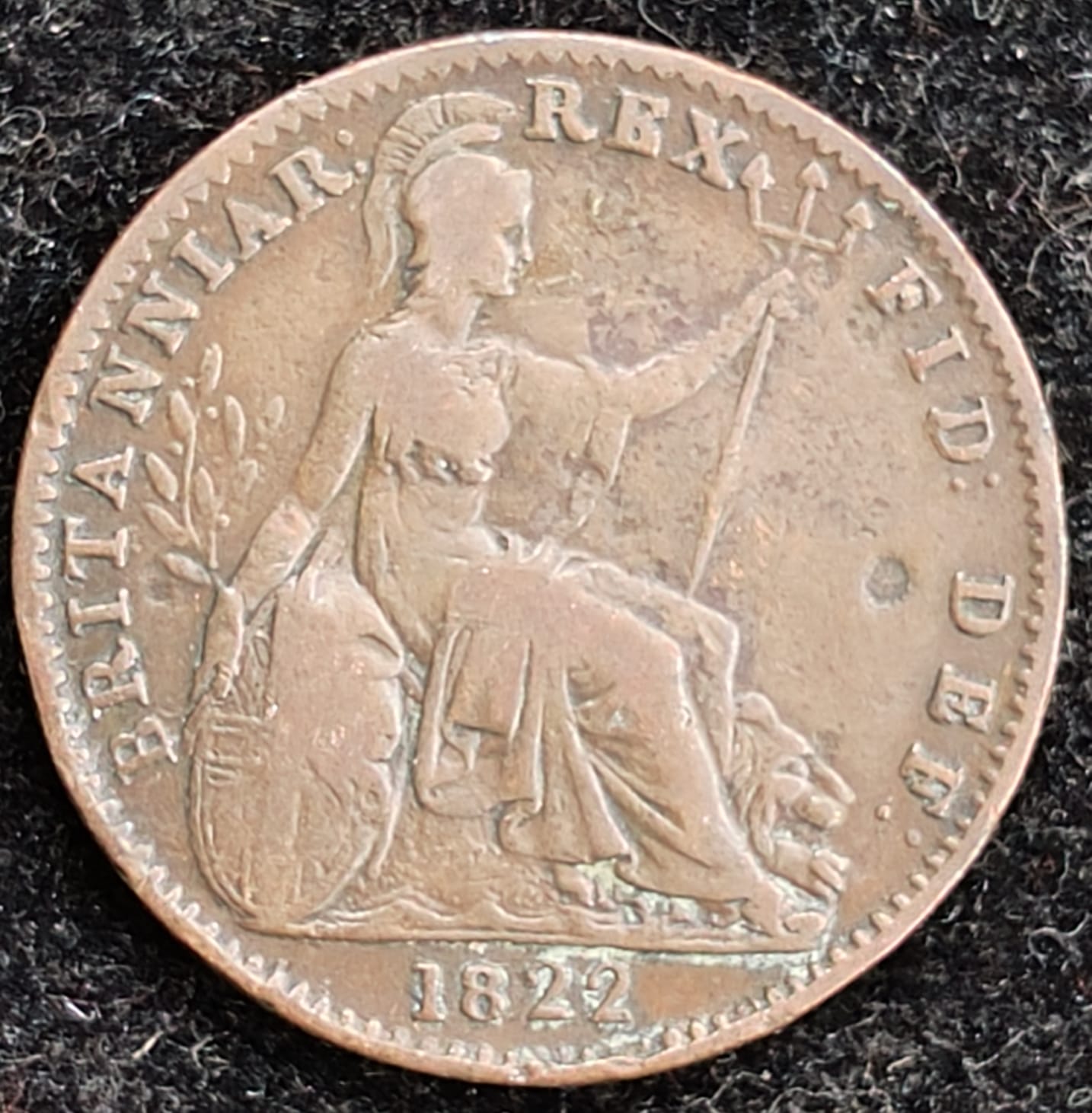 1822 United Kingdom 1 Farthing – George IV 1st issue 1 Farthing (1⁄960) Weight 4.72 g Extremely rare coin # 1020