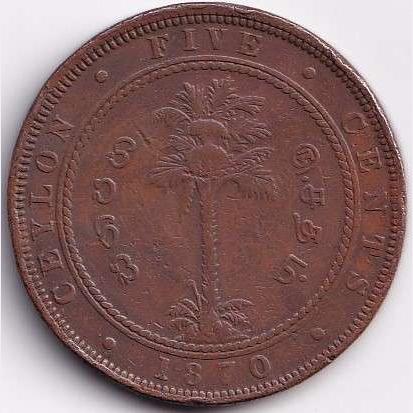 🌟 Rare 1870 Sri Lanka 5 Cents coin