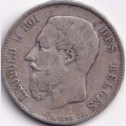 1871 Belgium 5 Francs – Léopold II small head Silver Weight 25 g Big Size Crown Size Coin