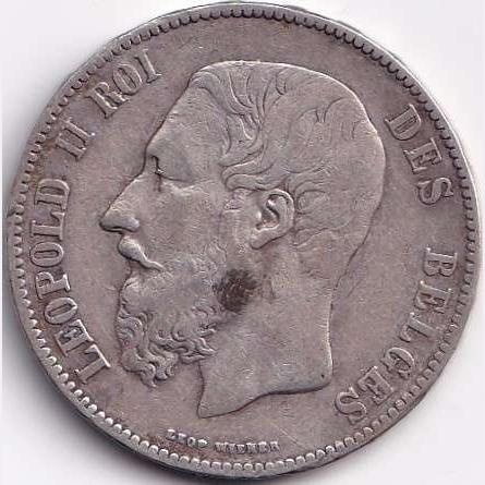 1876 Belgium 5 Francs – Léopold II small head Silver Weight 25 g Big Size Crown Size Coin