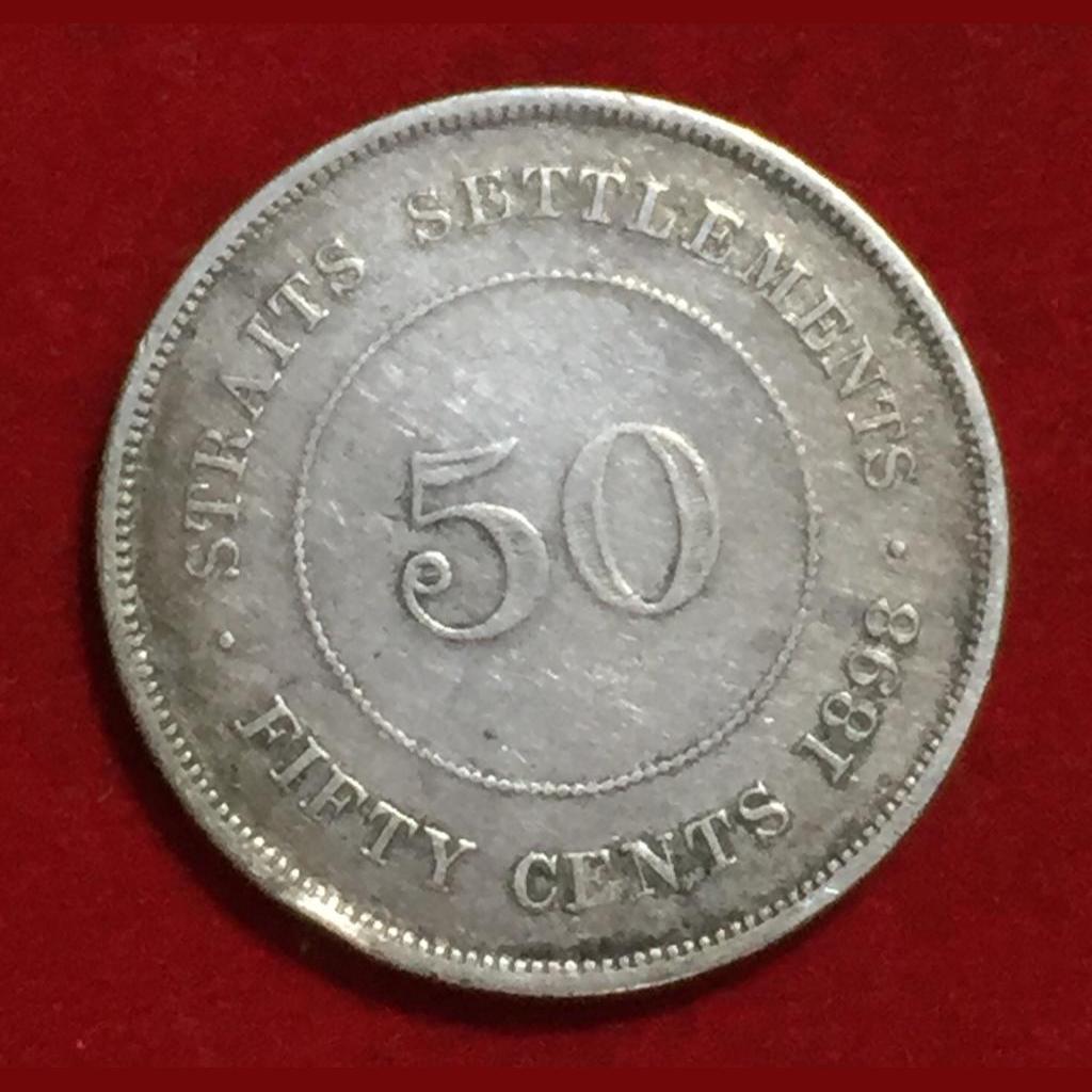 1898 Straits Settlement , British malaysia 50 cent Victoria Silver Very Rare Coin # o-2